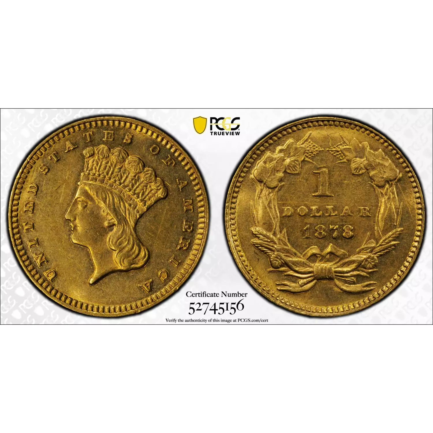 513975 | 1876-PR-63 Indian Princess Large Head Gold Dollar PCGS PR-63 DCAM | PCGS | PR-63 | Sold: 28/05/2020 | $7,500 |