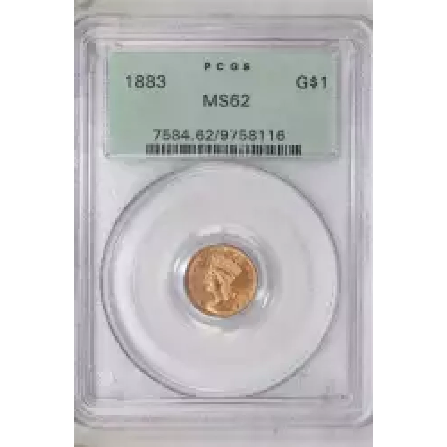 516631 | 1883 Indian Princess Large Head Gold Dollar PCGS MS-62 | PCGS | MS-62 | Sold: 06/02/2023 | $750 |