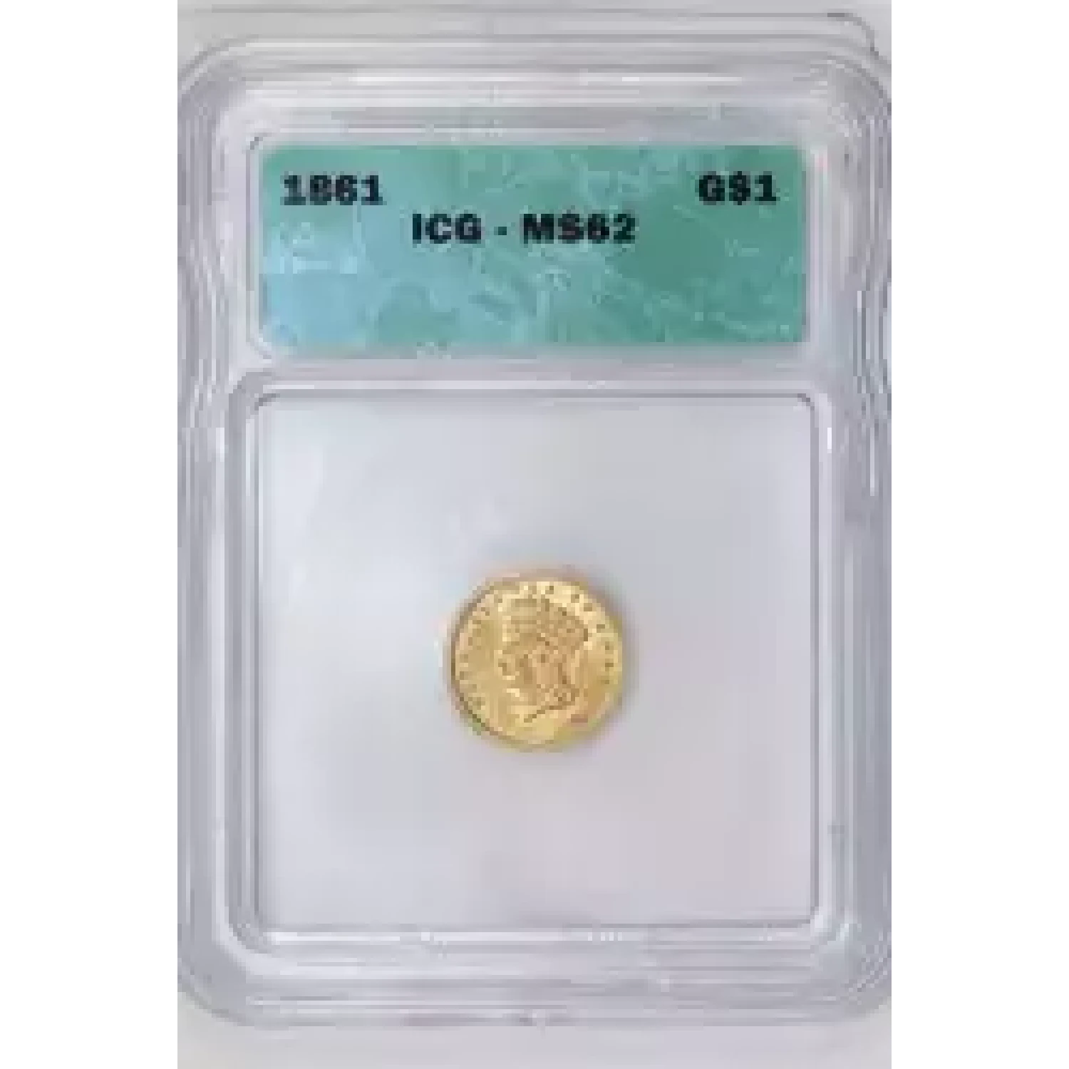 501595 | 1861 Indian Princess Large Head Gold Dollar ICG MS-62 | ICG | MS-62 | Sold: 02/05/2022 | $625 |