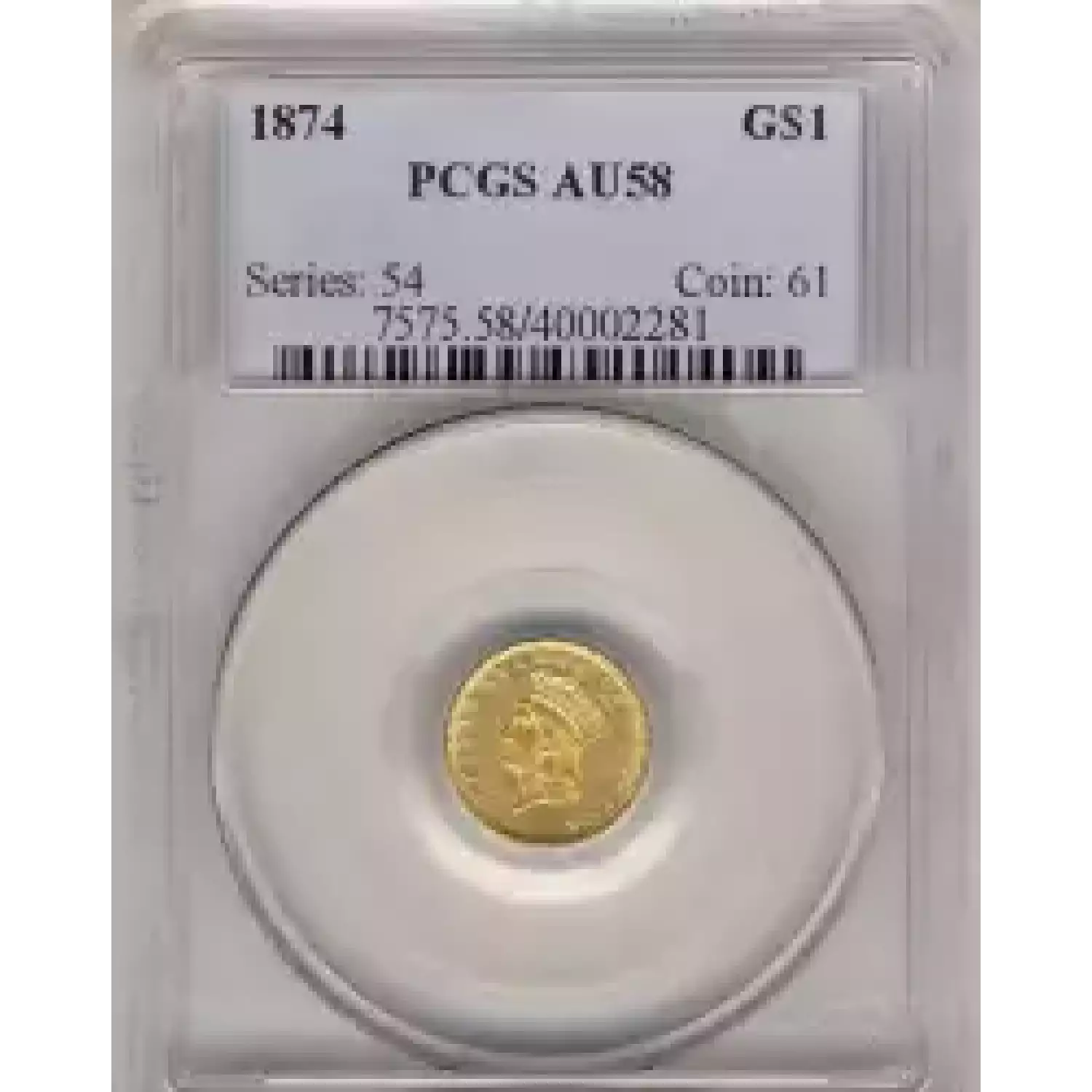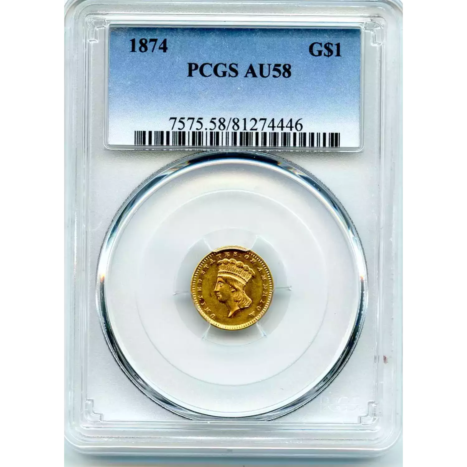 509996 | 1874-AU-58 Indian Princess Large Head Gold Dollar PCGS AU-58 | PCGS | AU-58 | Sold: 15/10/2016 | $315 |