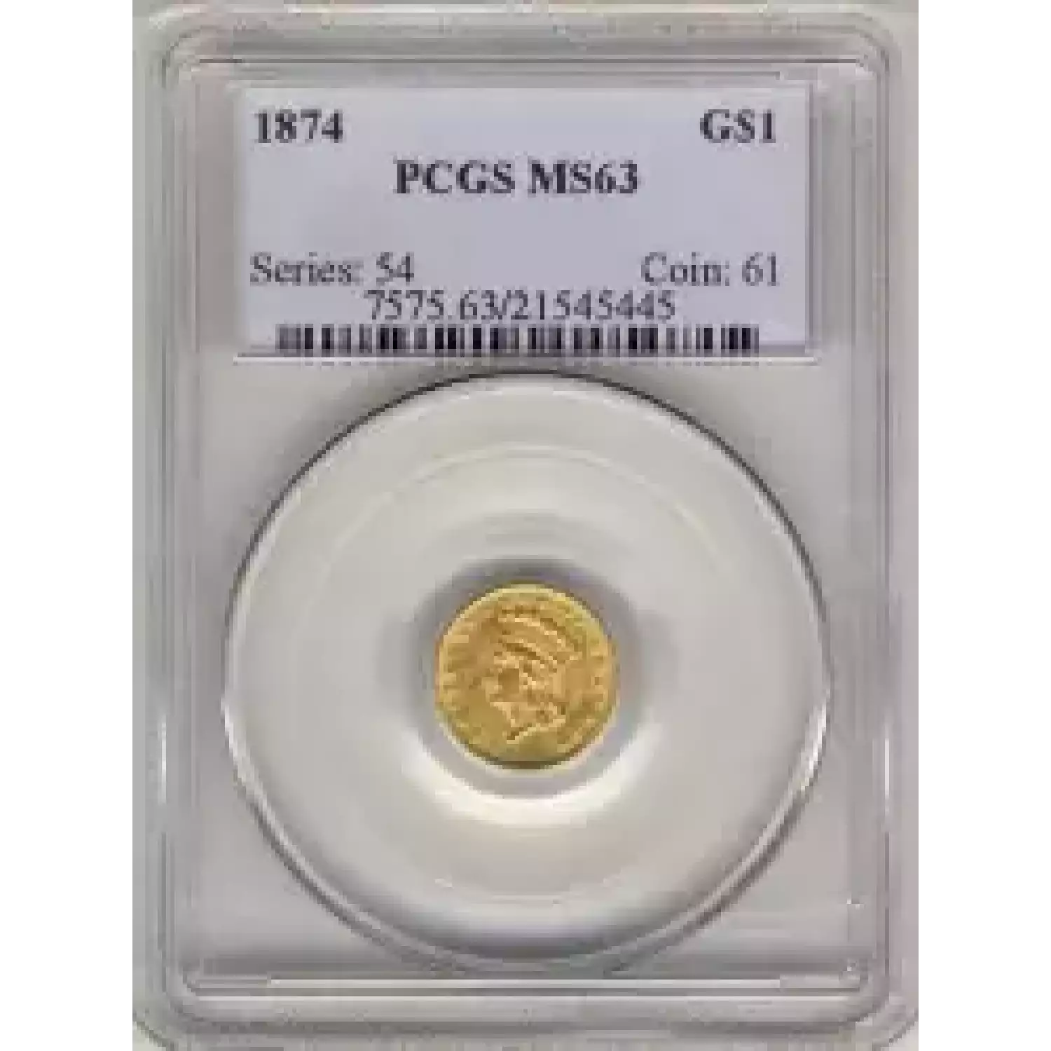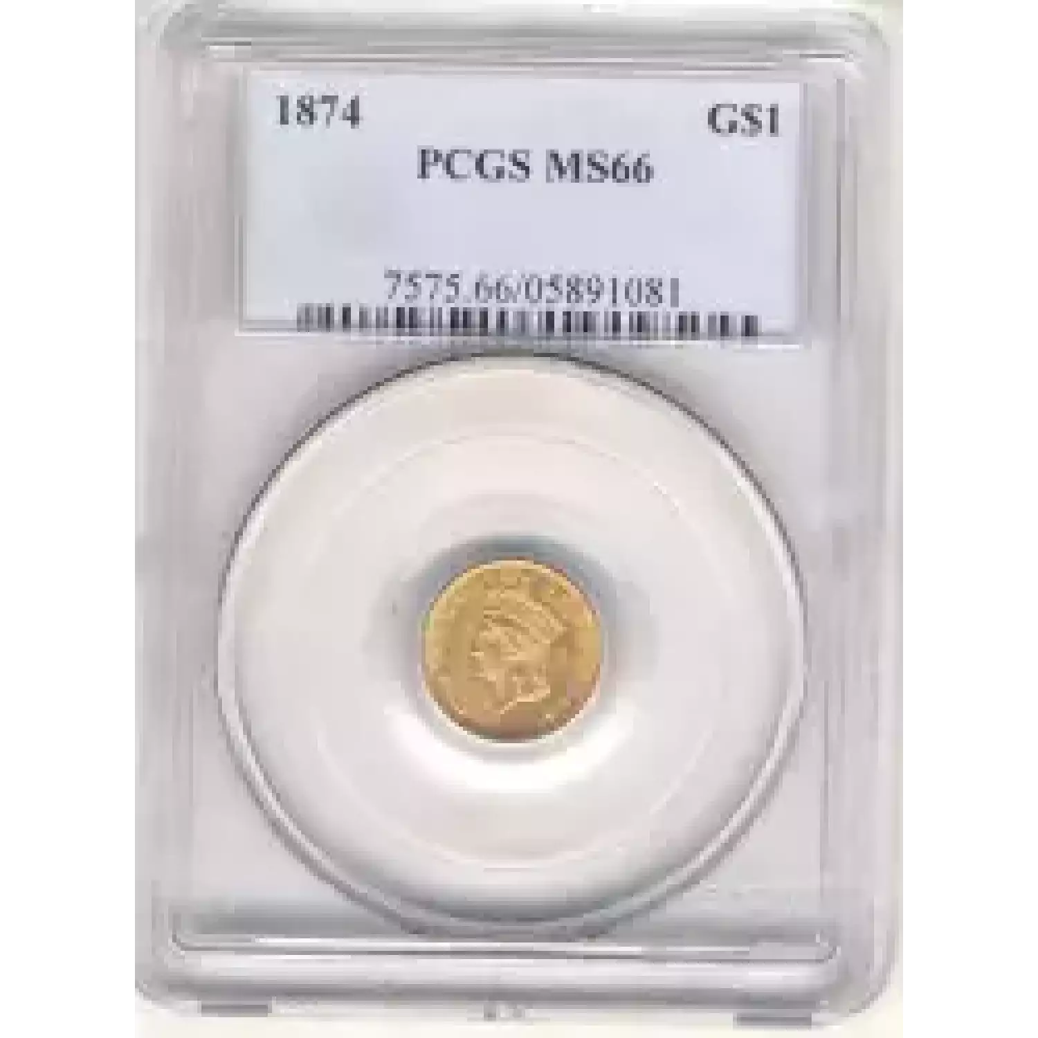 505719 | 1874-MS-66 Indian Princess Large Head Gold Dollar PCGS MS-66 | PCGS | MS-66 | Sold: 06/08/2011 | $2,450 |