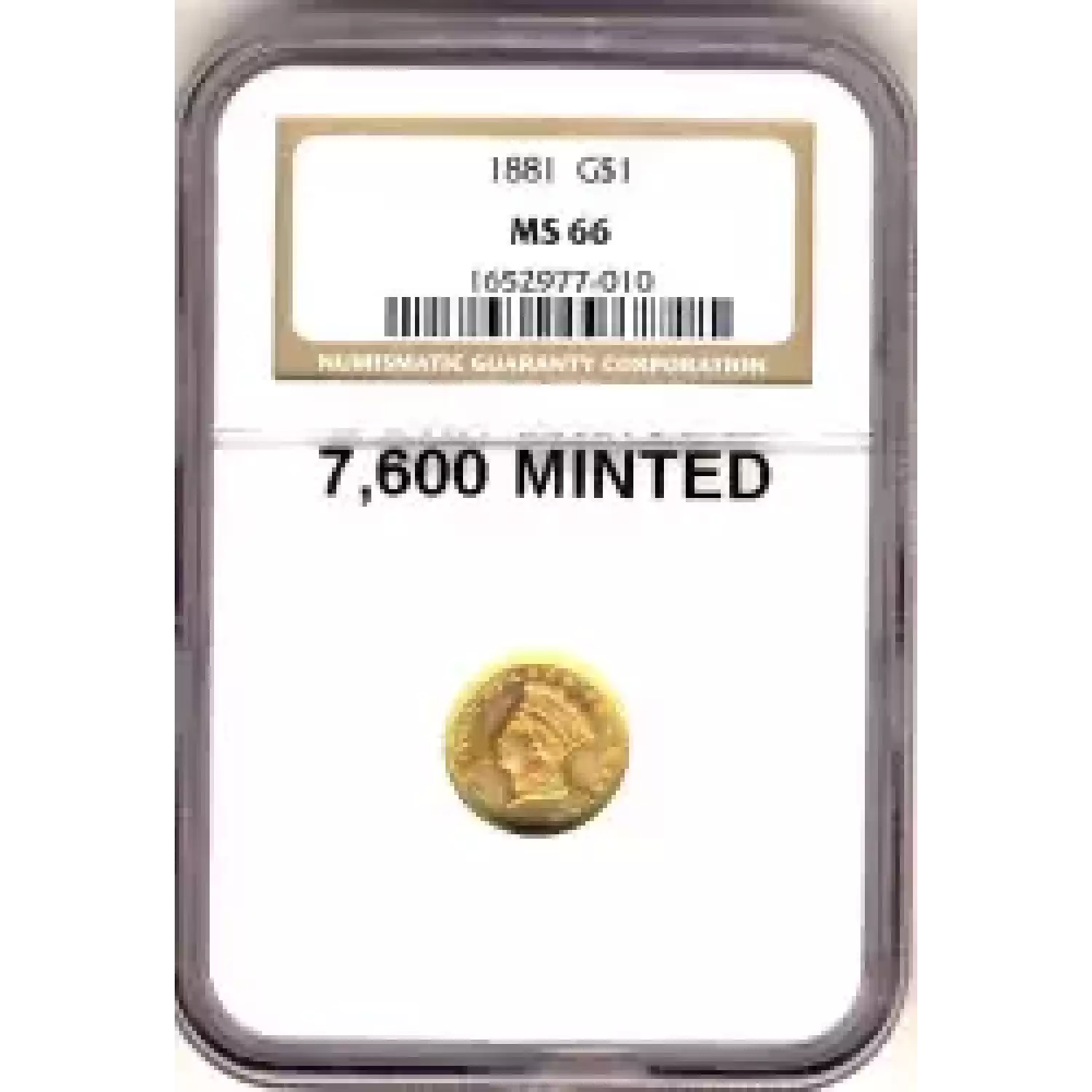 505964 | 1881-MS-66 Indian Princess Large Head Gold Dollar NGC MS-66 | NGC | MS-66 | Sold: 27/02/2012 | $2,500 |