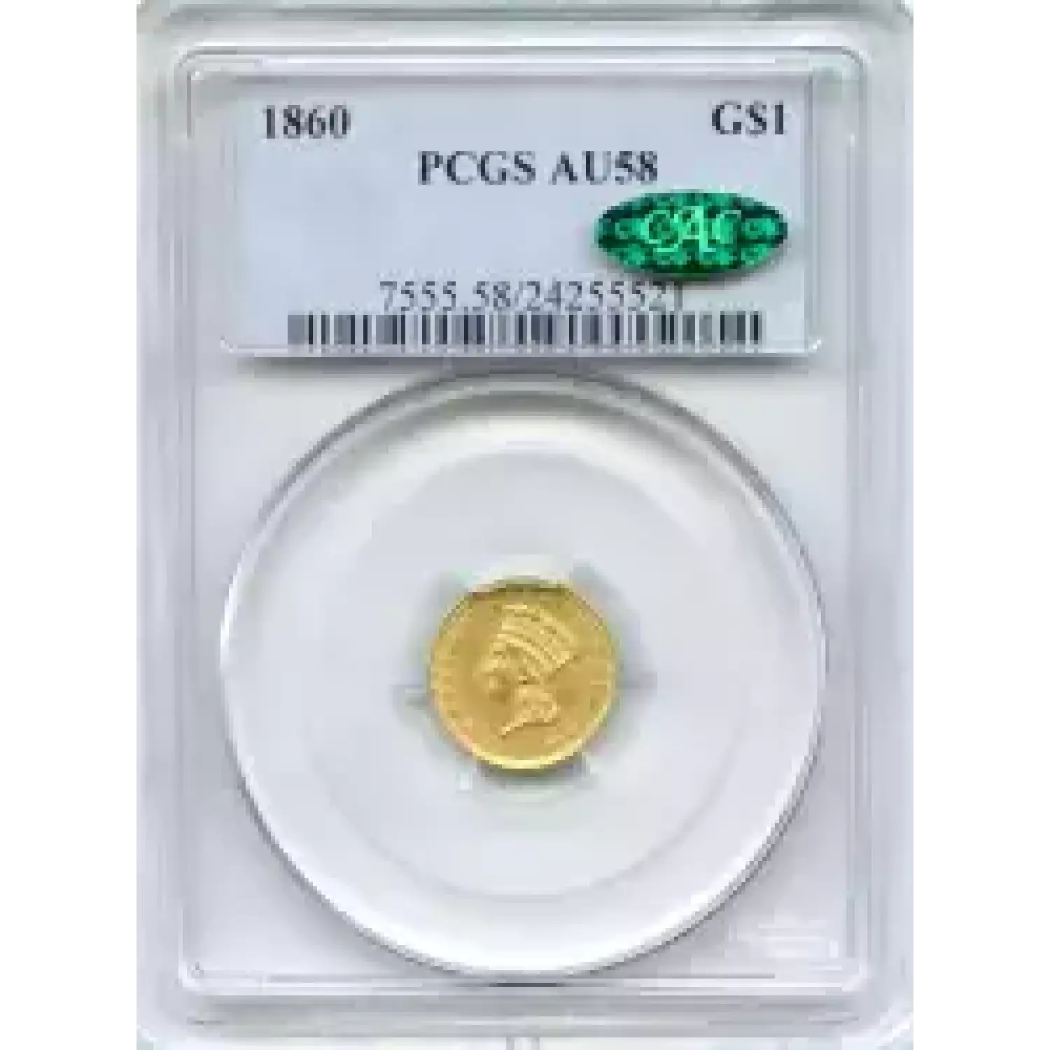 507102 | 1860-AU-58 Indian Princess Large Head Gold Dollar PCGS AU-58 CAC | PCGS | AU-58 | Sold: 13/01/2014 | $540 |