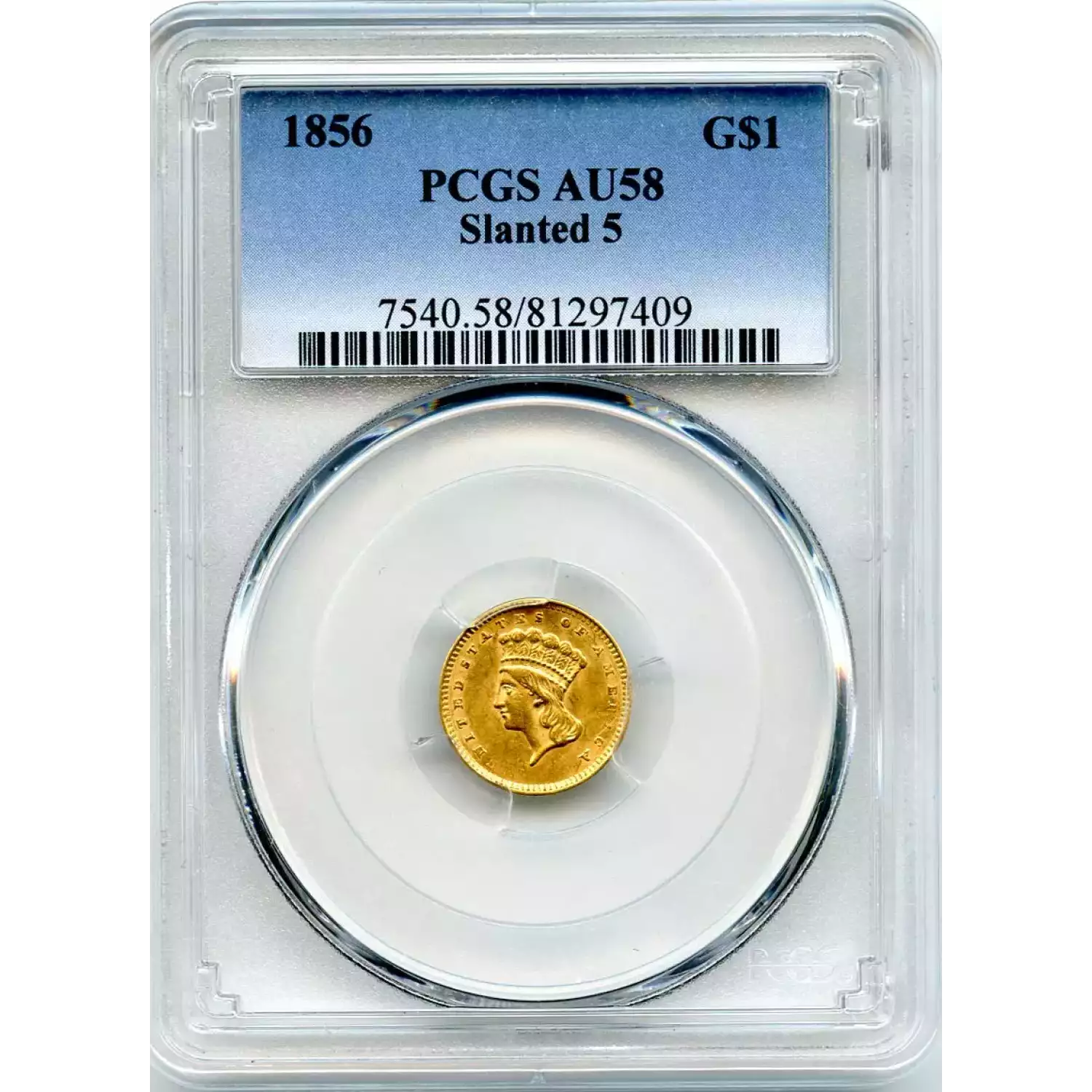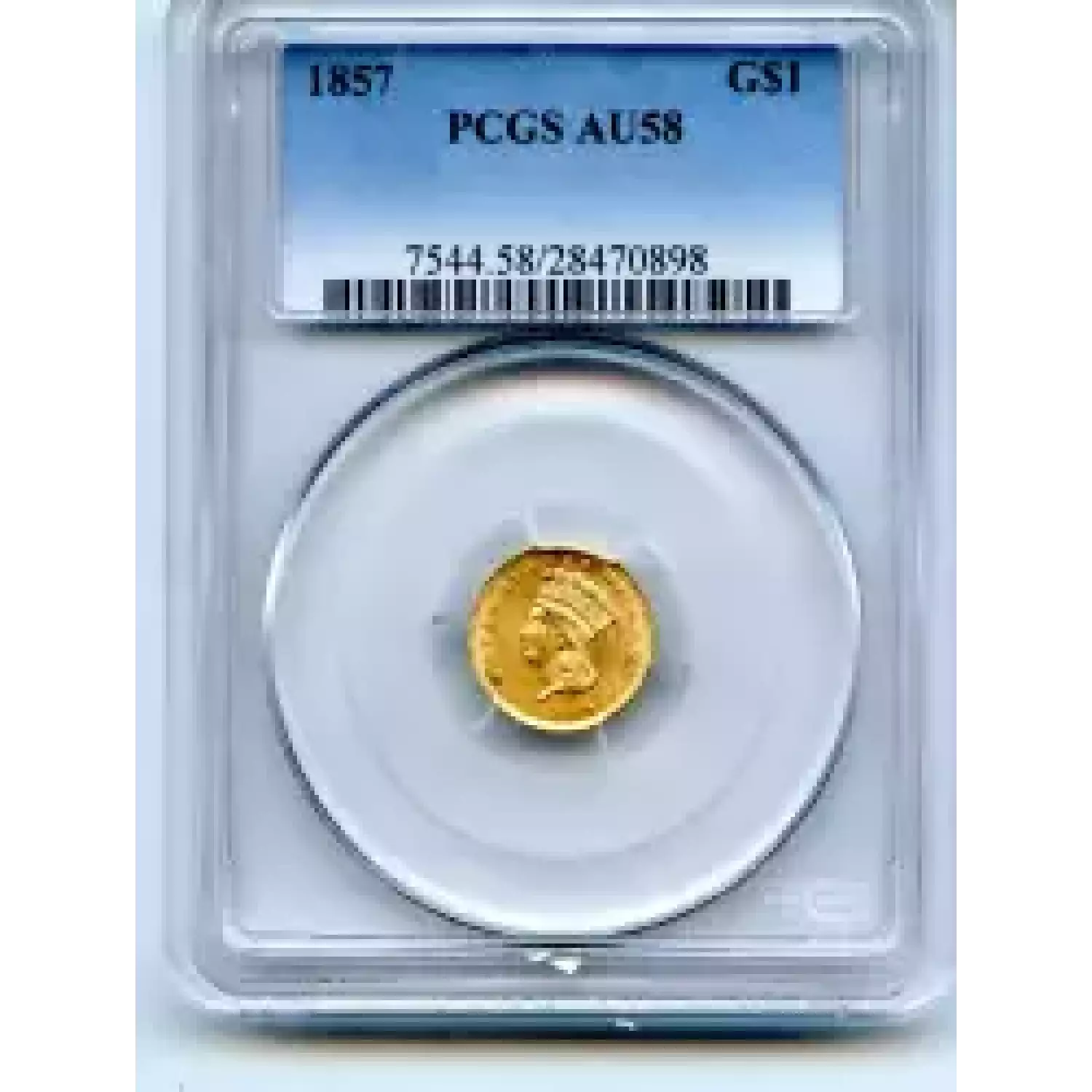 507220 | 1857-AU-58 Indian Princess Large Head Gold Dollar PCGS AU-58 | PCGS | AU-58 | Sold: 03/03/2014 | $295 |