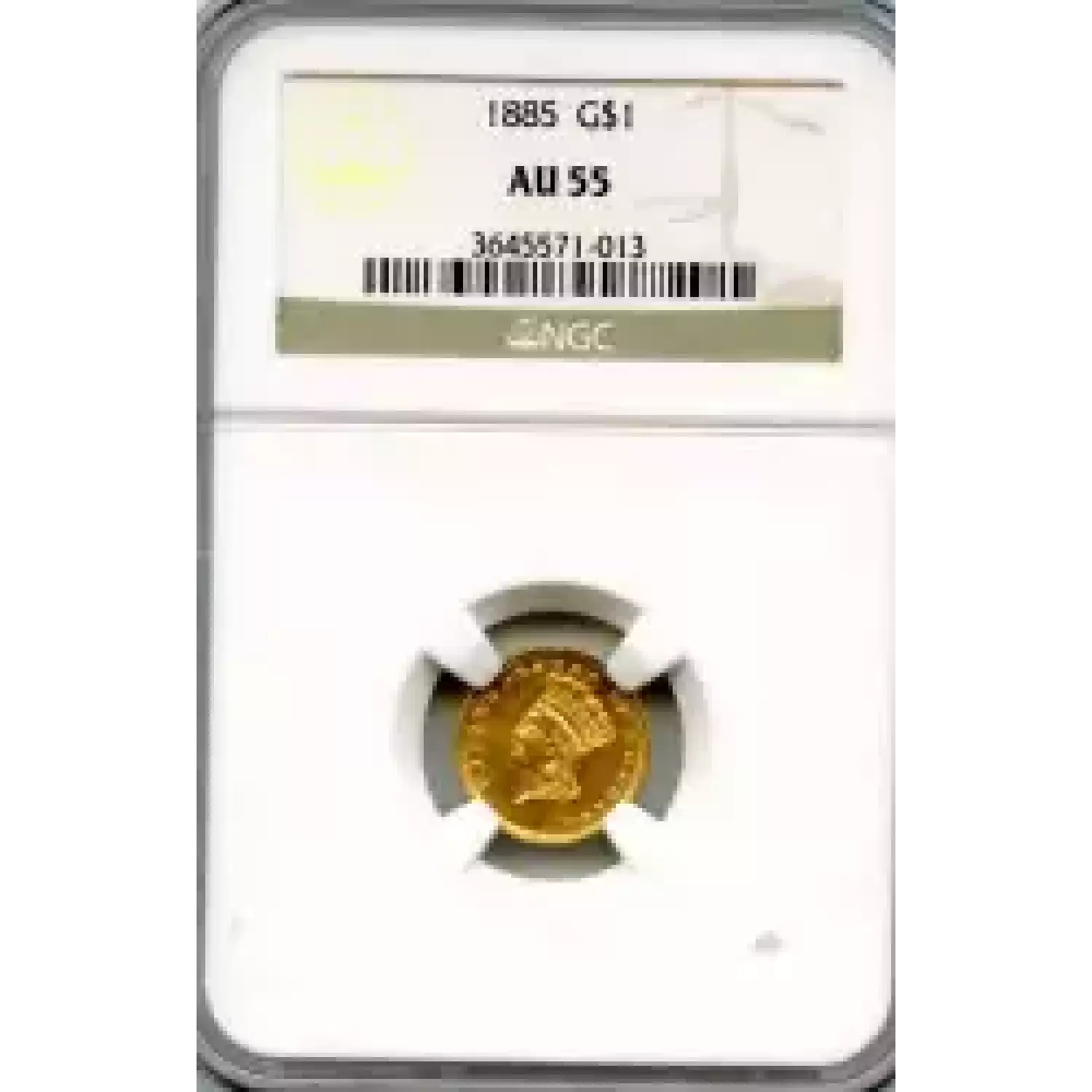 507723 | 1885-AU-55 Indian Princess Large Head Gold Dollar NGC AU-55 | NGC | AU-55 | Sold: 14/07/2014 | $325 |