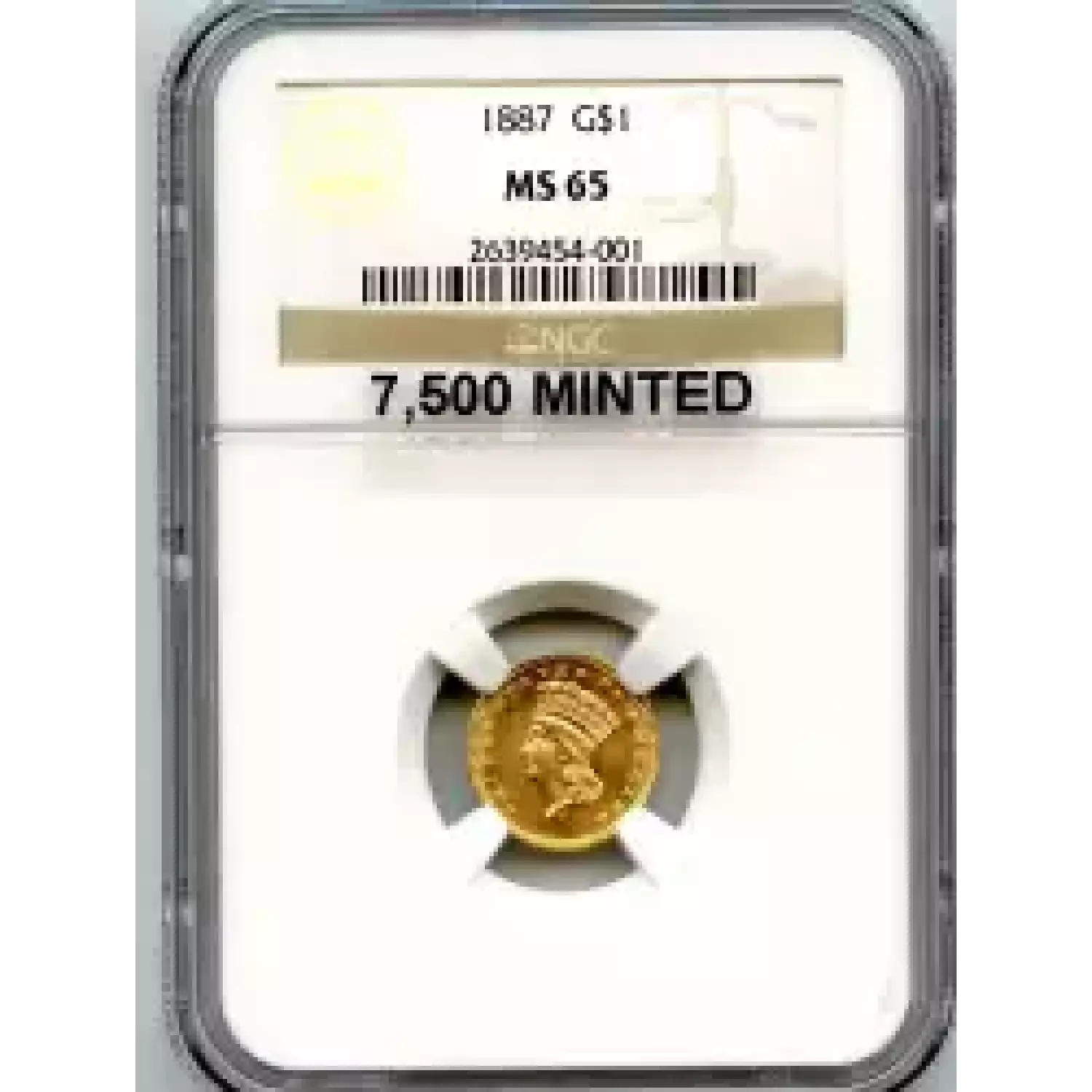 508091 | 1887-MS-65 Indian Princess Large Head Gold Dollar NGC MS-65 | NGC | MS-65 | Sold: 02/11/2014 | $1,200 |