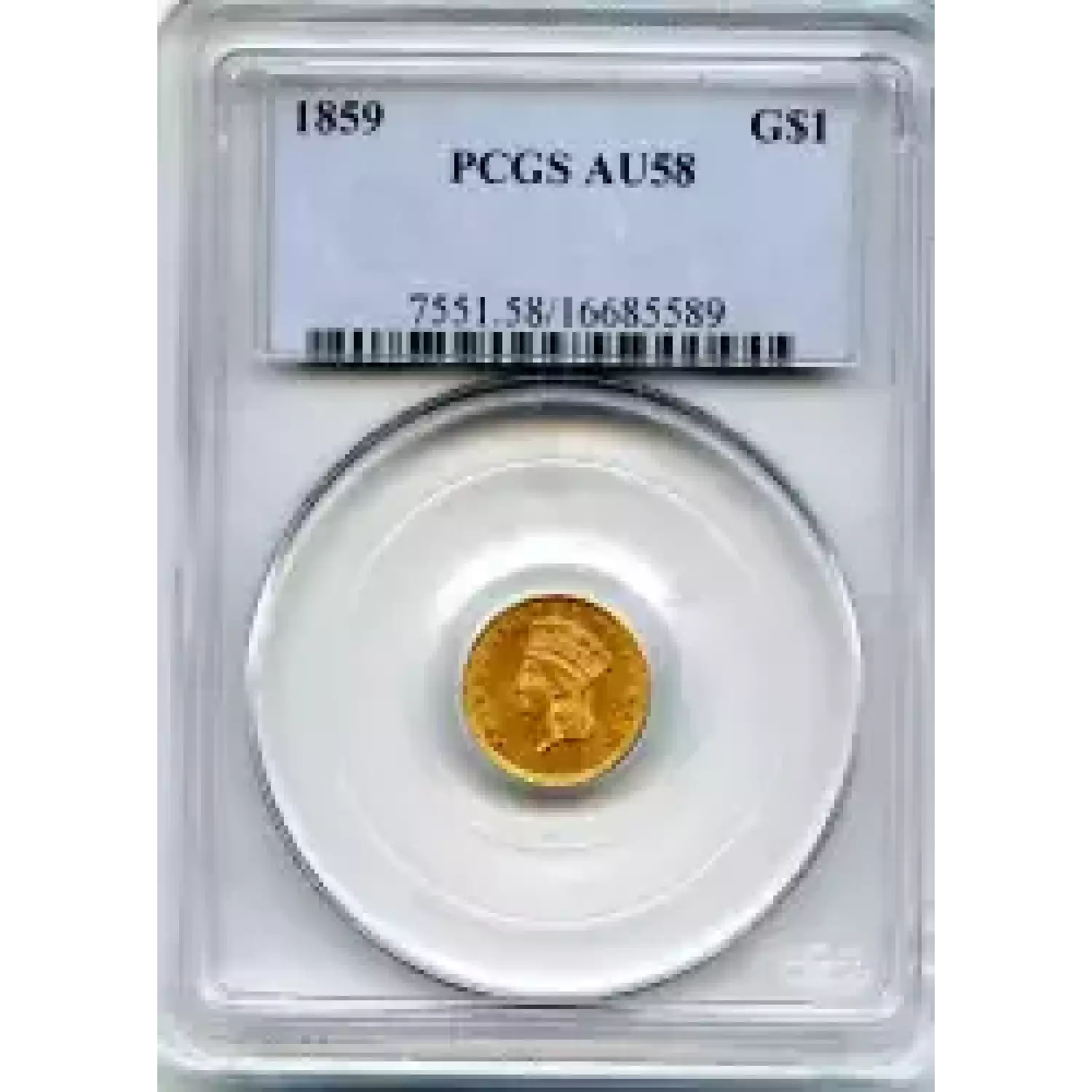508186 | 1859-AU-58 Indian Princess Large Head Gold Dollar PCGS AU-58 | PCGS | AU-58 | Sold: 28/03/2015 | $350 |