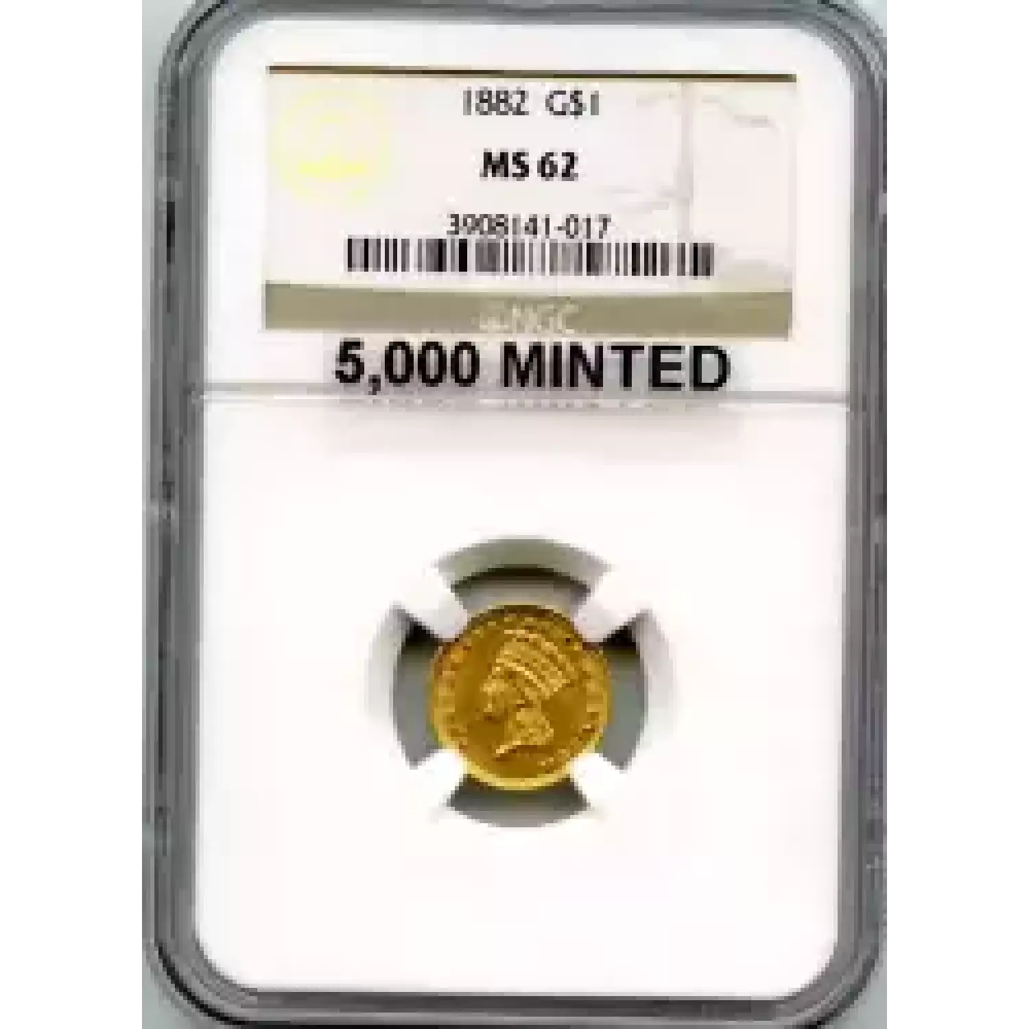 508389 | 1882-MS-62 Indian Princess Large Head Gold Dollar NGC MS-62 | NGC | MS-62 | Sold: 25/04/2015 | $595 |