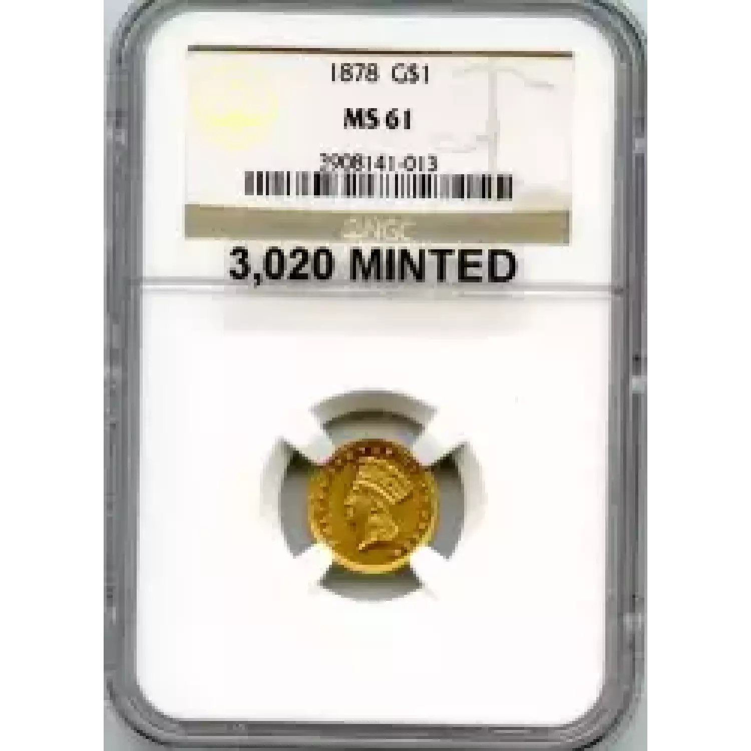 508399 | 1878-MS-61 Indian Princess Large Head Gold Dollar NGC MS-61 | NGC | MS-61 | Sold: 07/02/2015 | $610 |