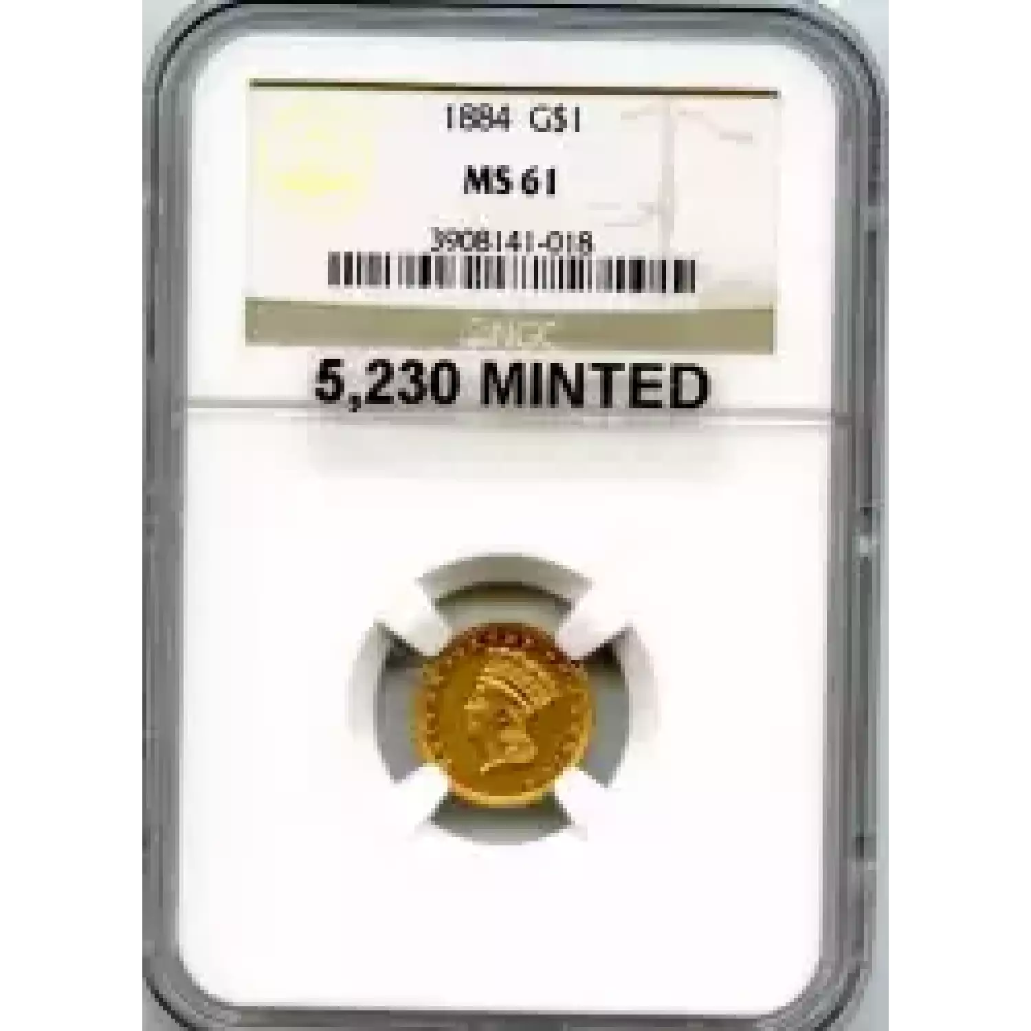 508402 | 1884-MS-61 Indian Princess Large Head Gold Dollar NGC MS-61 | NGC | MS-61 | Sold: 25/04/2015 | $580 |