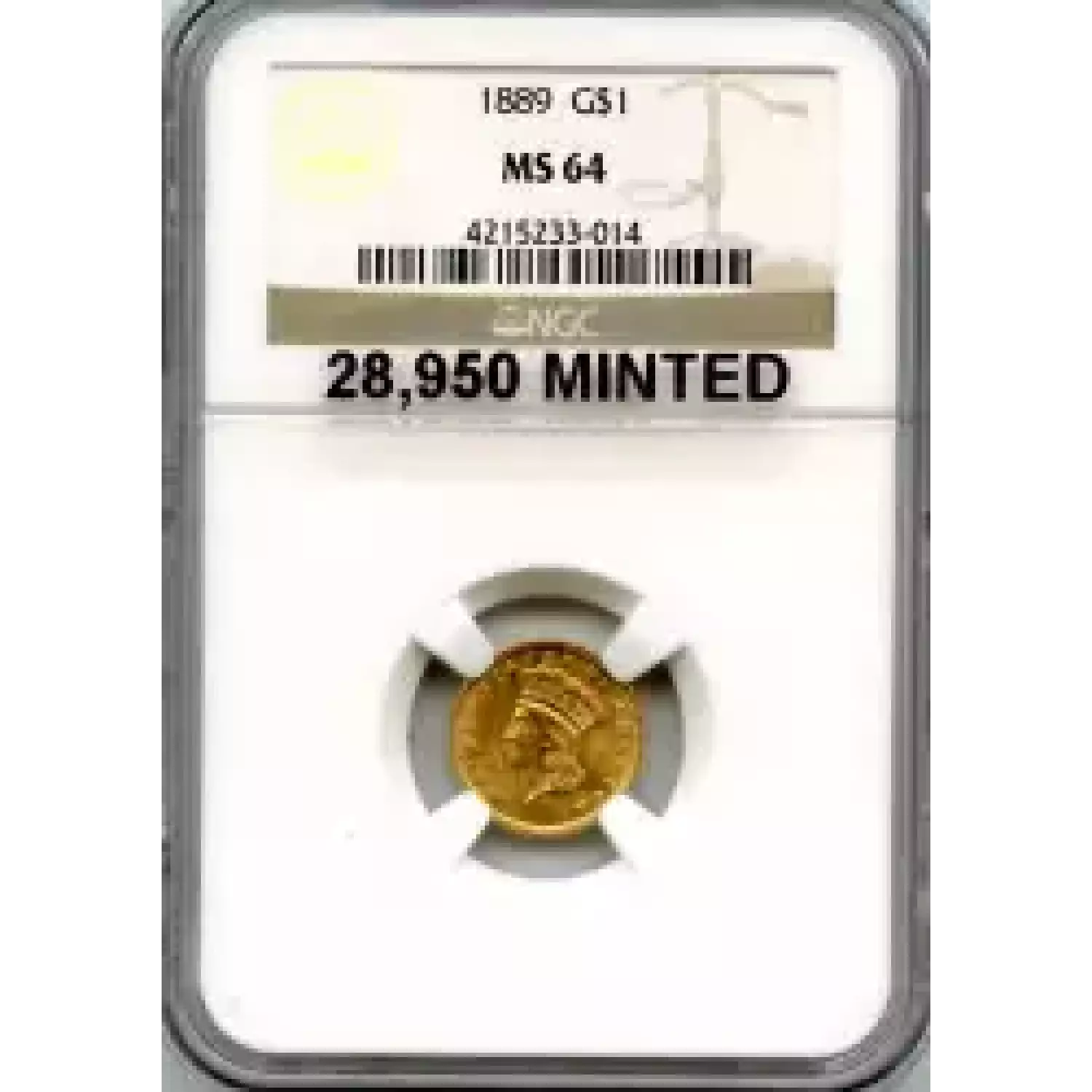 507824 | 1889-MS-62 Indian Princess Large Head Gold Dollar NGC MS-62 | NGC | MS-62 | Sold: 20/09/2014 | $650 |
