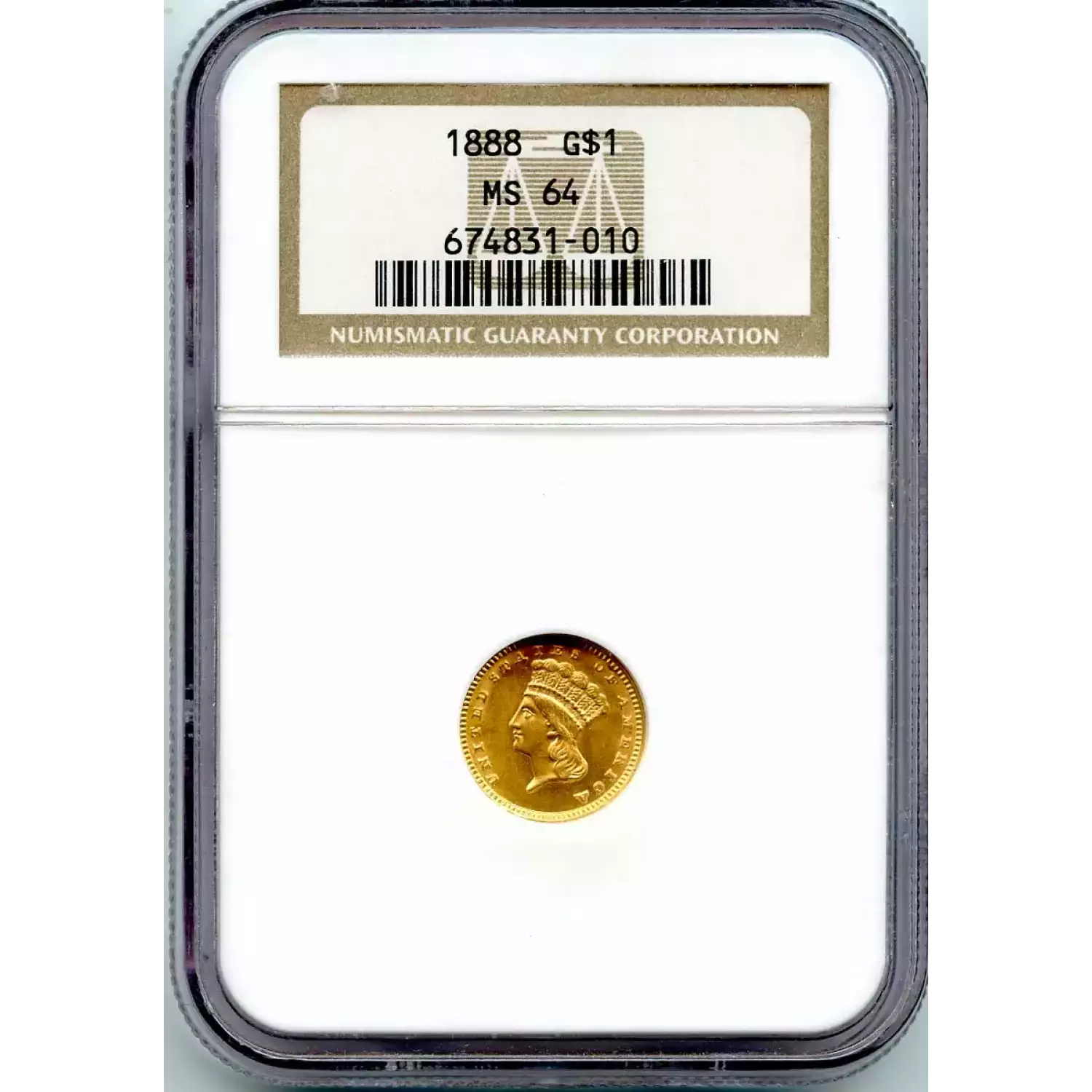 513942 | 1888-MS-64 Indian Princess Large Head Gold Dollar NGC MS-64 | NGC | MS-64 | Sold: 12/05/2020 | $700 |
