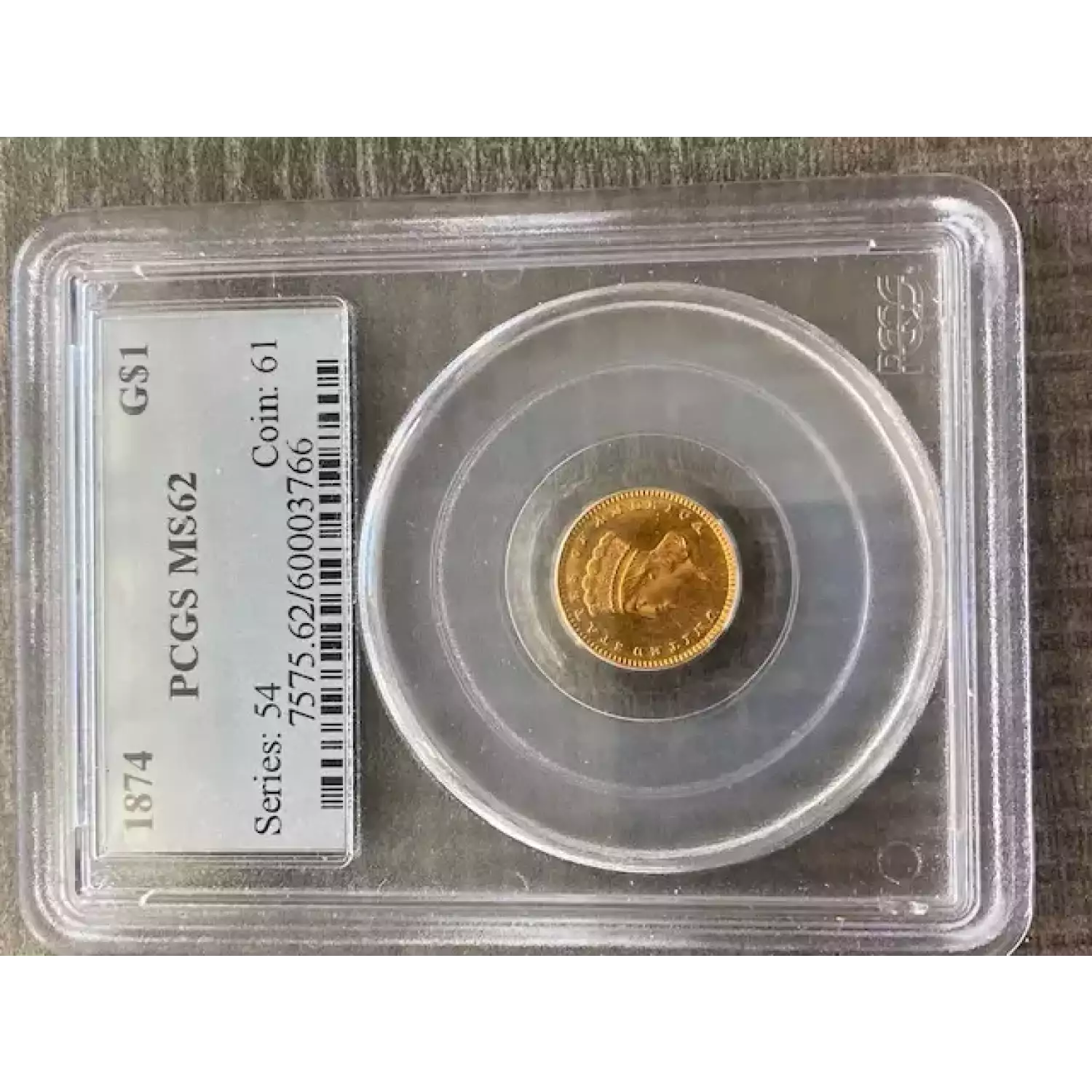 514715 | 1874-MS-62 Indian Princess Large Head Gold Dollar PCGS MS-62 | PCGS | MS-62 | Sold: 03/01/2021 | $445 |