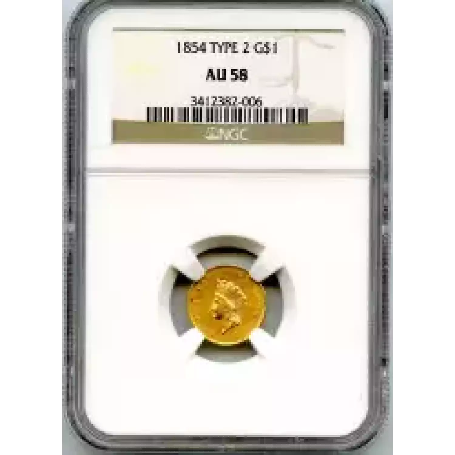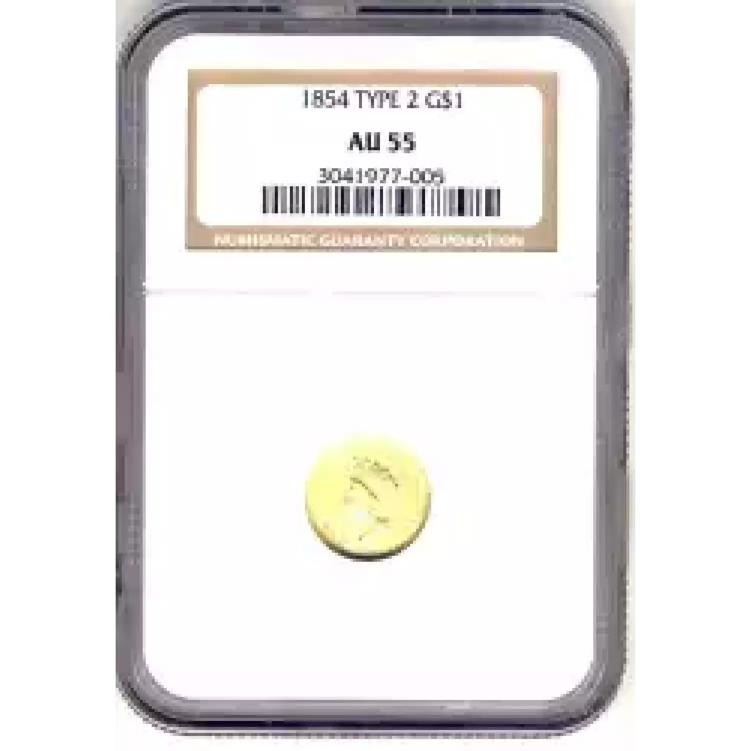 503224 | 1854-AU-58 Gold Dollars Liberty Head NGC AU-58 | NGC | AU-58 | Sold: 17/03/2006 | $190 |