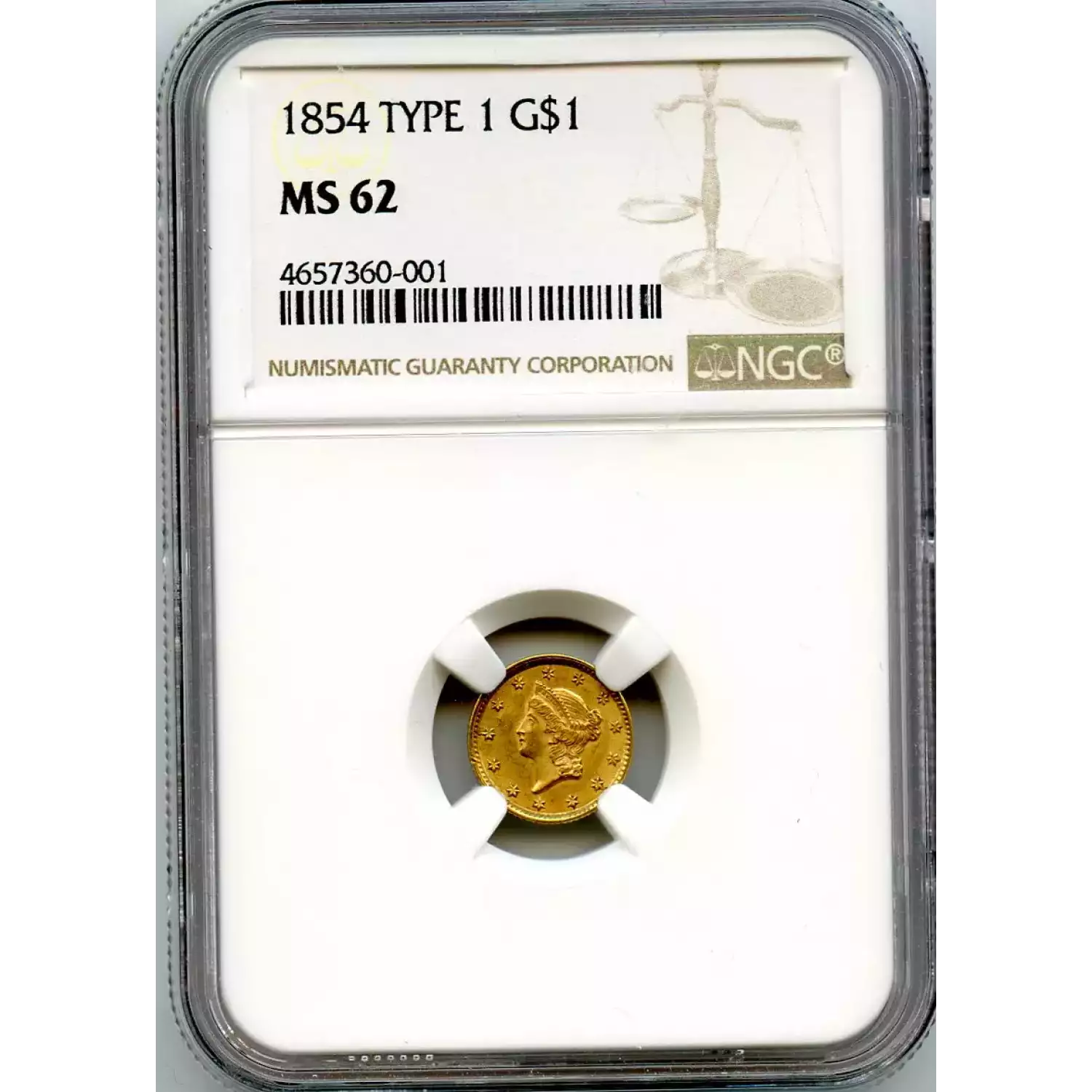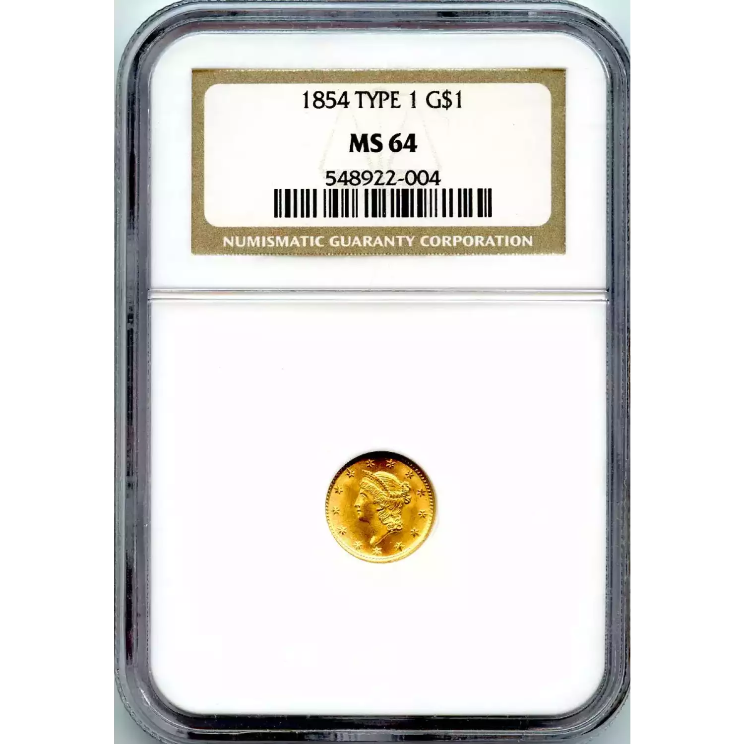 513945 | 1854-MS-64 Gold Dollars Liberty Head NGC MS-64 | NGC | MS-64 | Sold: 22/04/2020 | $975 |
