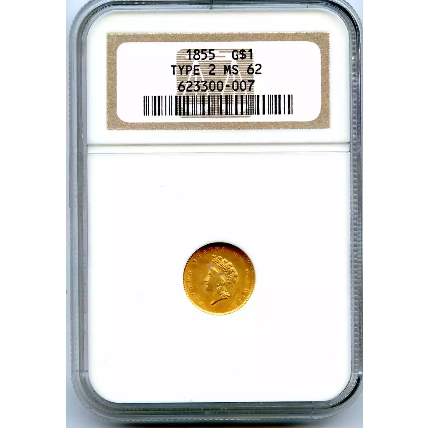 513941 | 1855-MS-62 Gold Dollars Indian Princess Head, Small Head NGC MS-62 | NGC | MS-62 | Sold: 12/05/2020 | $1,600 |