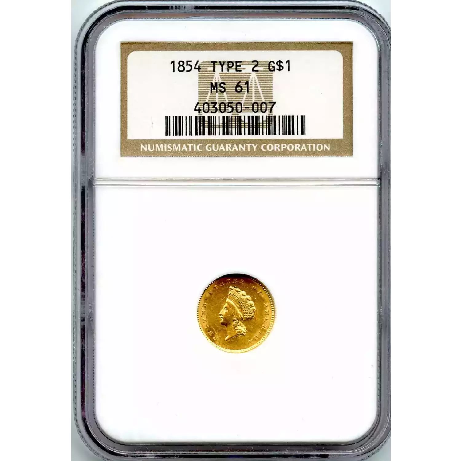 513951 | 1854-MS-61 Gold Dollars Indian Princess Head, Small Head NGC MS-61 | NGC | MS-61 | Sold: 05/07/2020 | $1,400 |