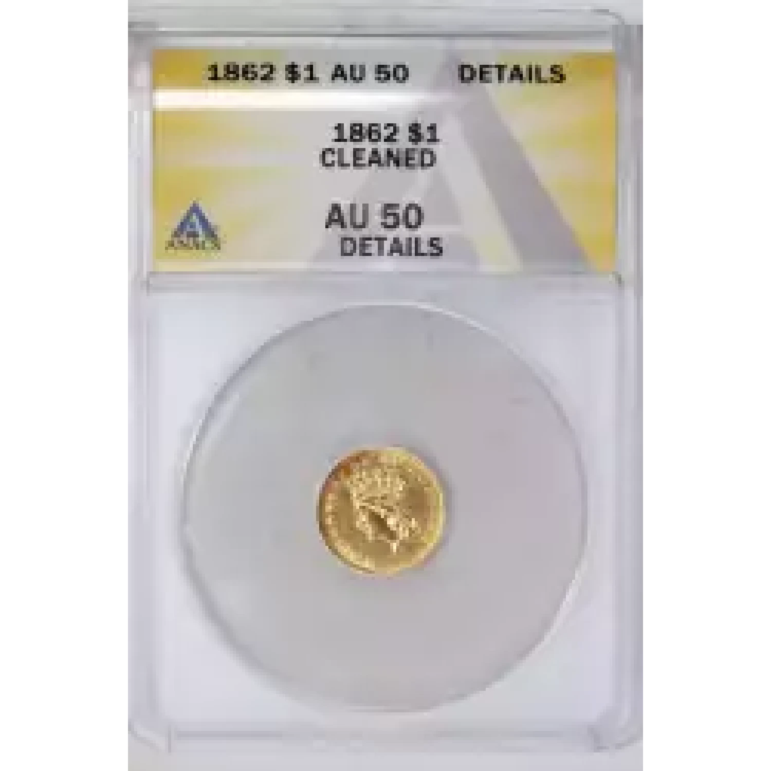 501973 | 1862 Gold Dollars Liberty Head ANACS Genuine (95 - Scratches) | ANACS | Genuine (95 - Scratches) | Sold: 09/06/2022 | $450 |