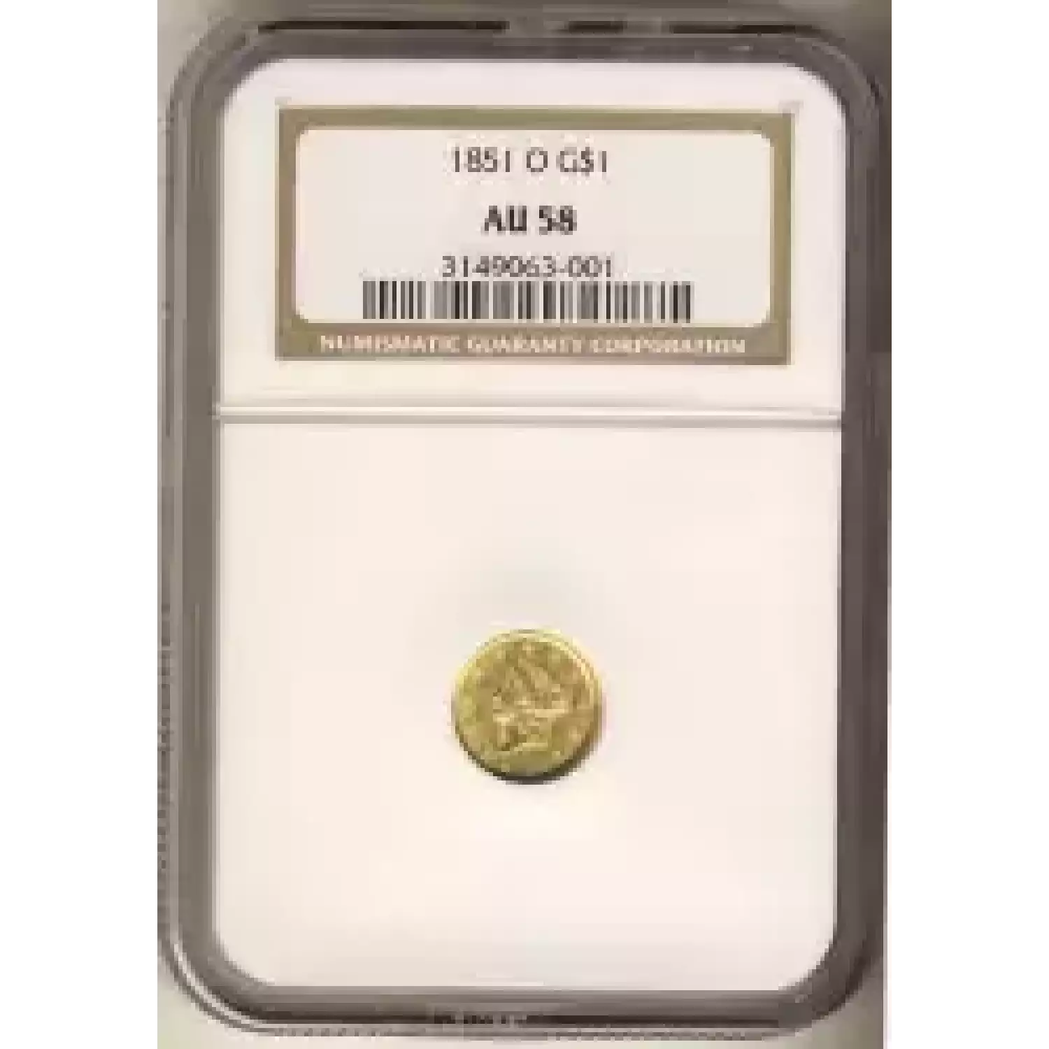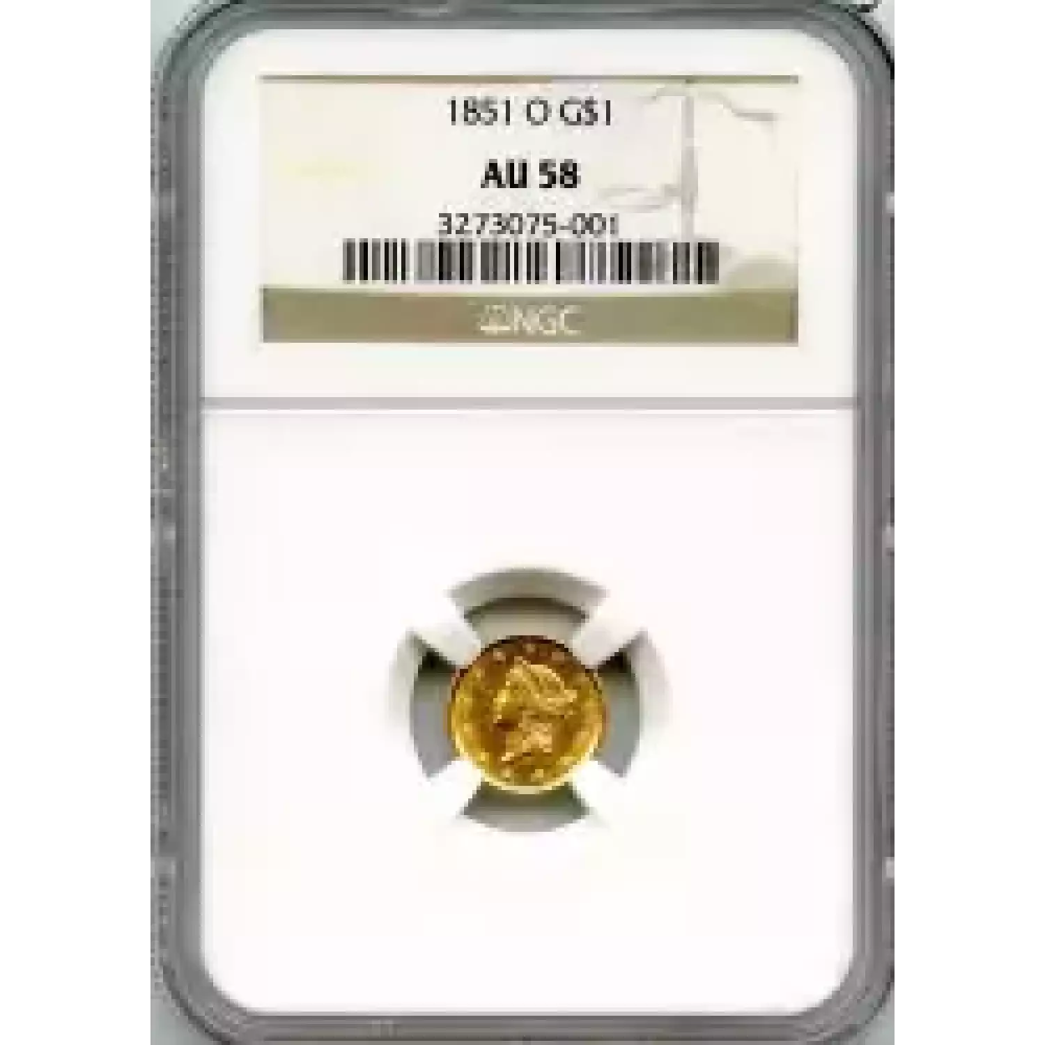 508185 | 1851-AU-58 Gold Dollars Liberty Head NGC AU-58 | NGC | AU-58 | Sold: 17/11/2014 | $400 |