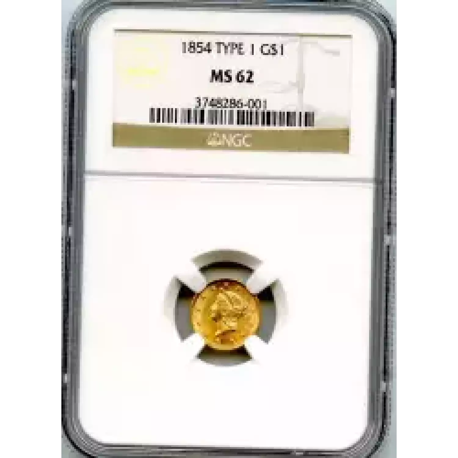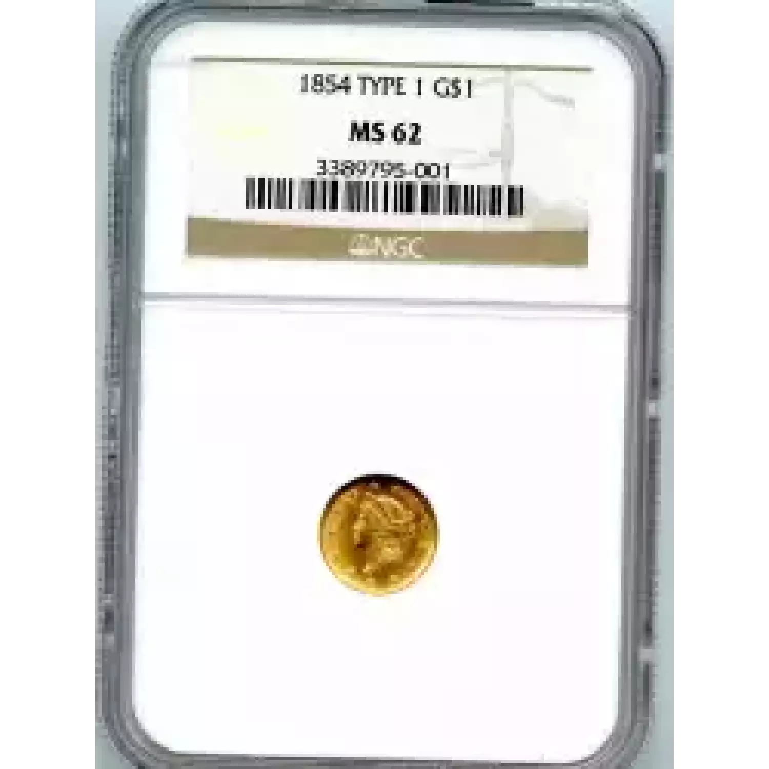 511900 | 1854-MS-62 Gold Dollars Indian Princess Head, Small Head NGC MS-62 | NGC | MS-62 | Sold: 10/07/2018 | $350 |