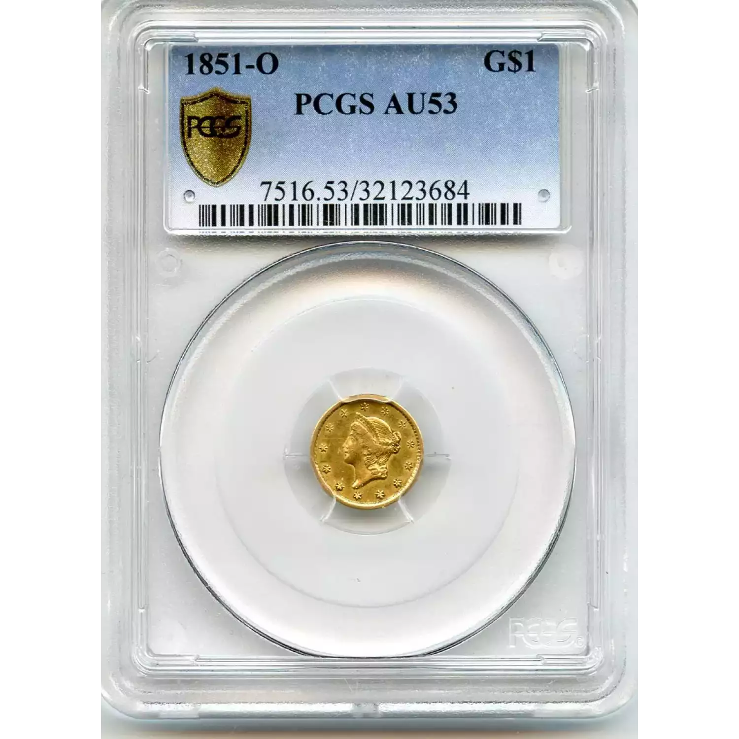 512947 | 1851-AU-55 Gold Dollars Liberty Head PCGS AU-55 CAC Gold | PCGS | AU-55 | Sold: 22/07/2019 | $2,475 |