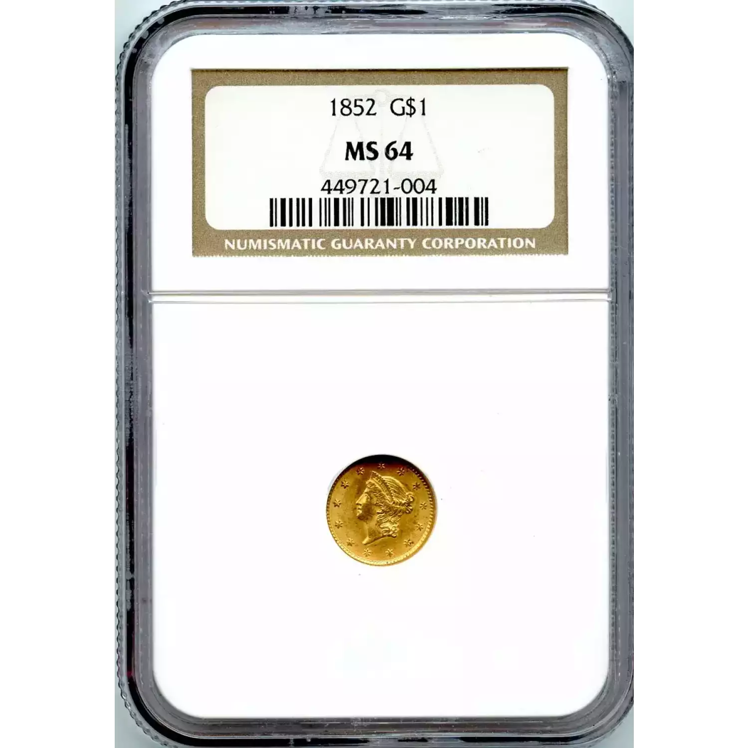 513943 | 1852-MS-64 Gold Dollars Liberty Head NGC MS-64 | NGC | MS-64 | Sold: 11/08/2020 | $550 |