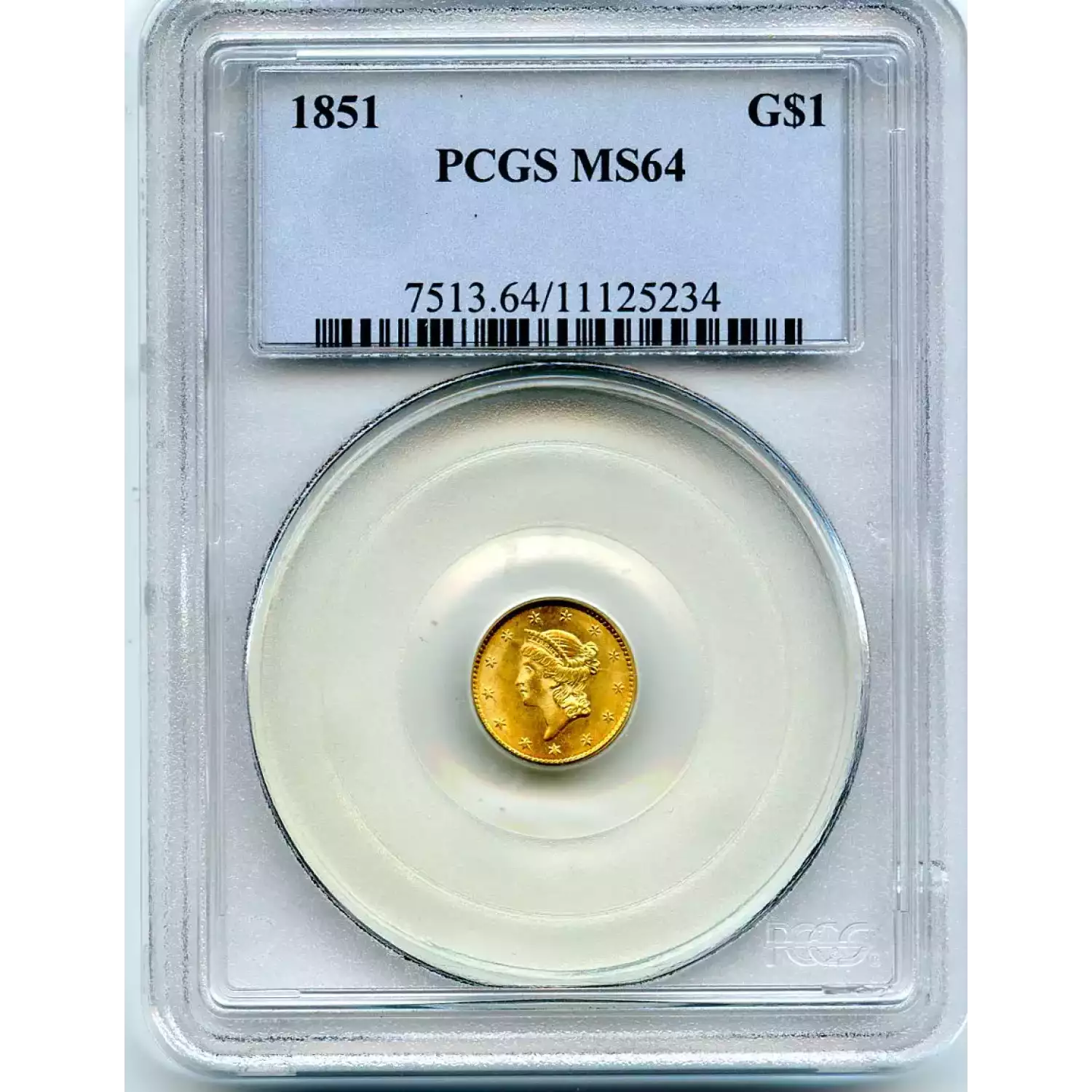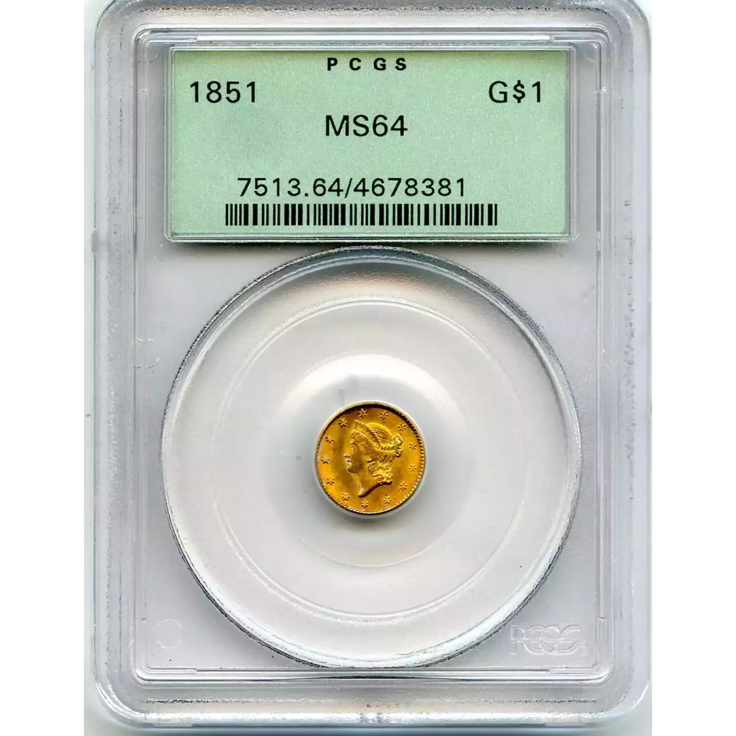 513944 | 1851-MS-64 Gold Dollars Liberty Head PCGS MS-64 | PCGS | MS-64 | Sold: 22/04/2020 | $775 |