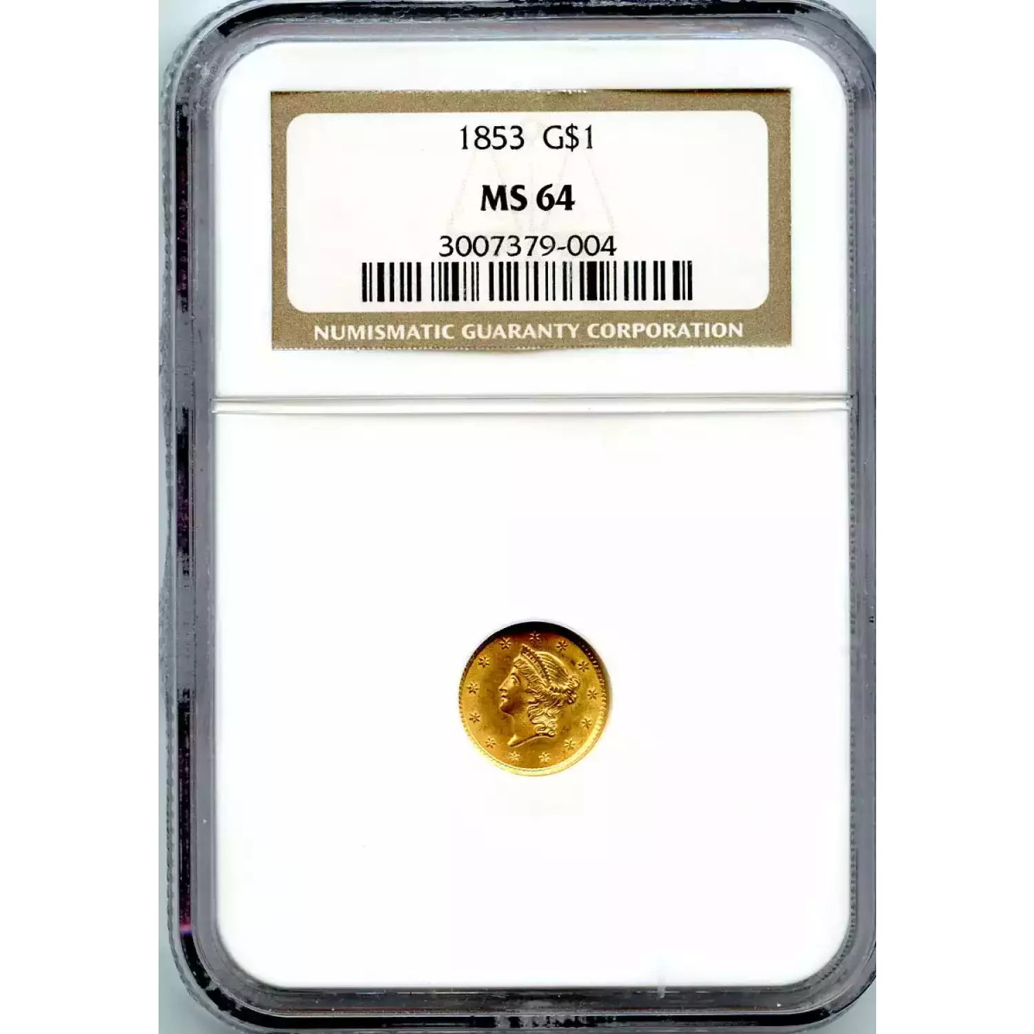 511904 | 1853-MS-62 Gold Dollars Liberty Head NGC MS-62 | NGC | MS-62 | Sold: 19/08/2018 | $315 |