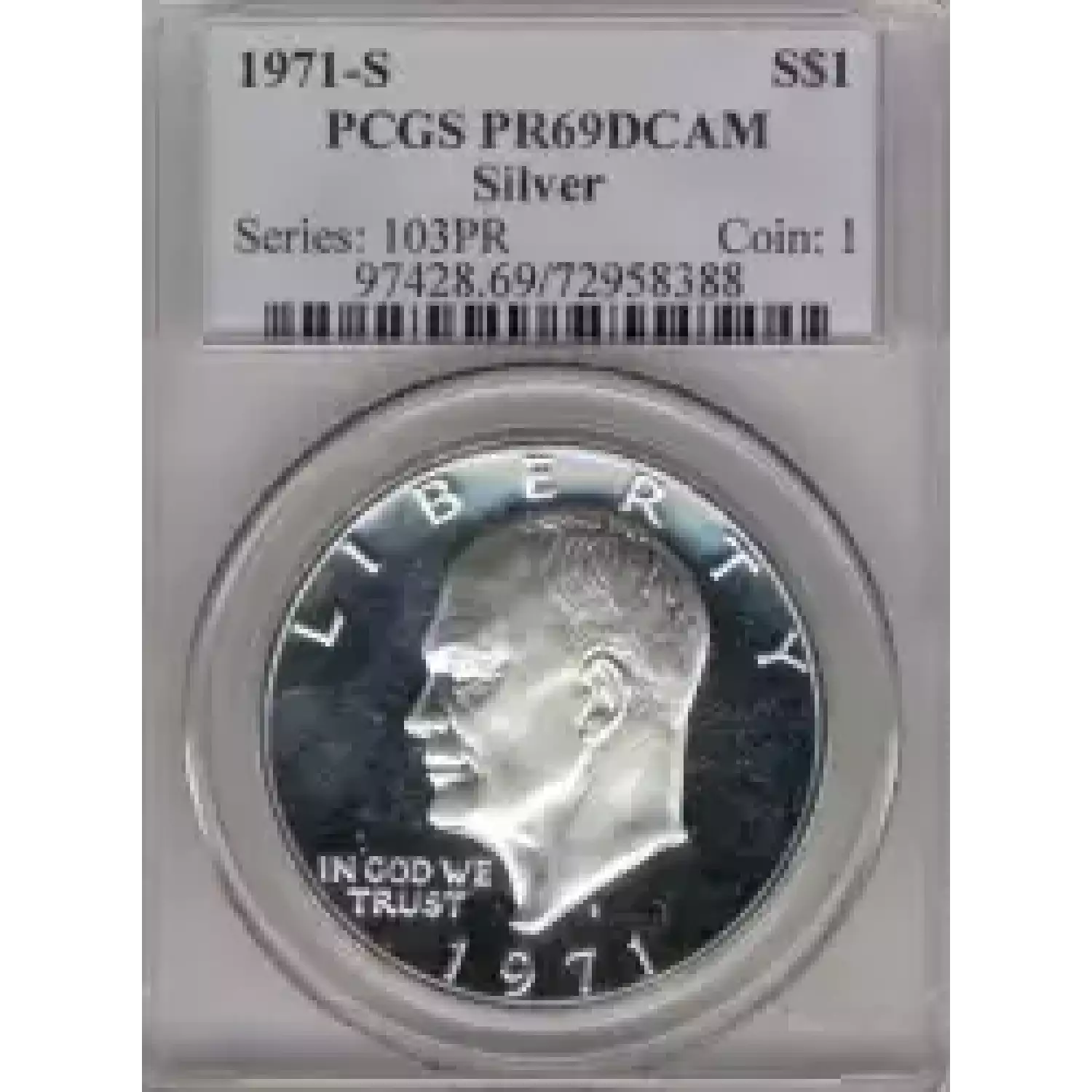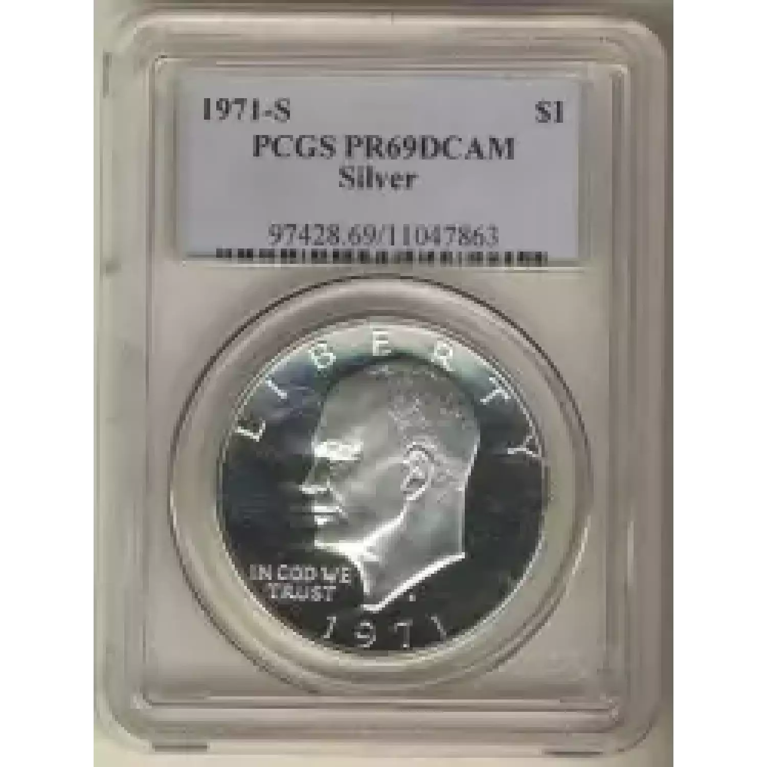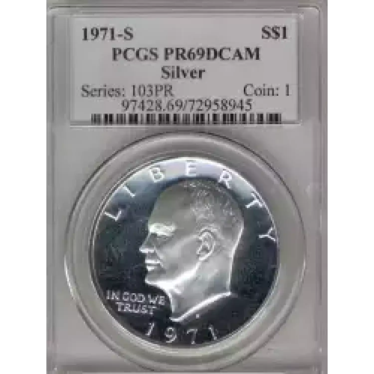 503097 | 1971-PR-69 Dollar Eisenhower Nickel - Copper PCGS PR-69 DCAM | PCGS | PR-69 | Sold: 12/11/2005 | $50 |