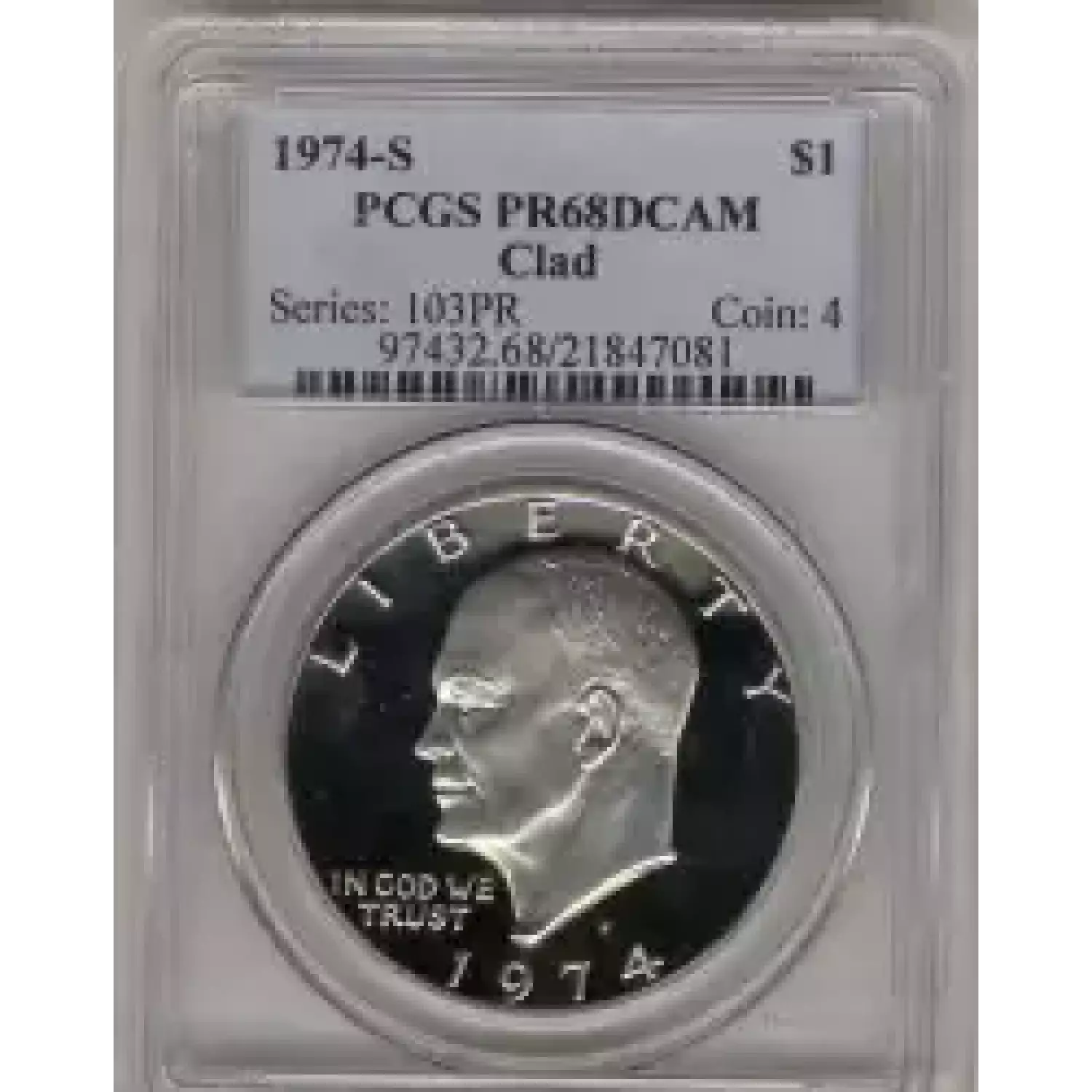 504648 | 1974-PR-69 Dollar Eisenhower Nickel - Copper PCGS PR-69 DCAM | PCGS | PR-69 | Sold: 03/10/2009 | $40 |