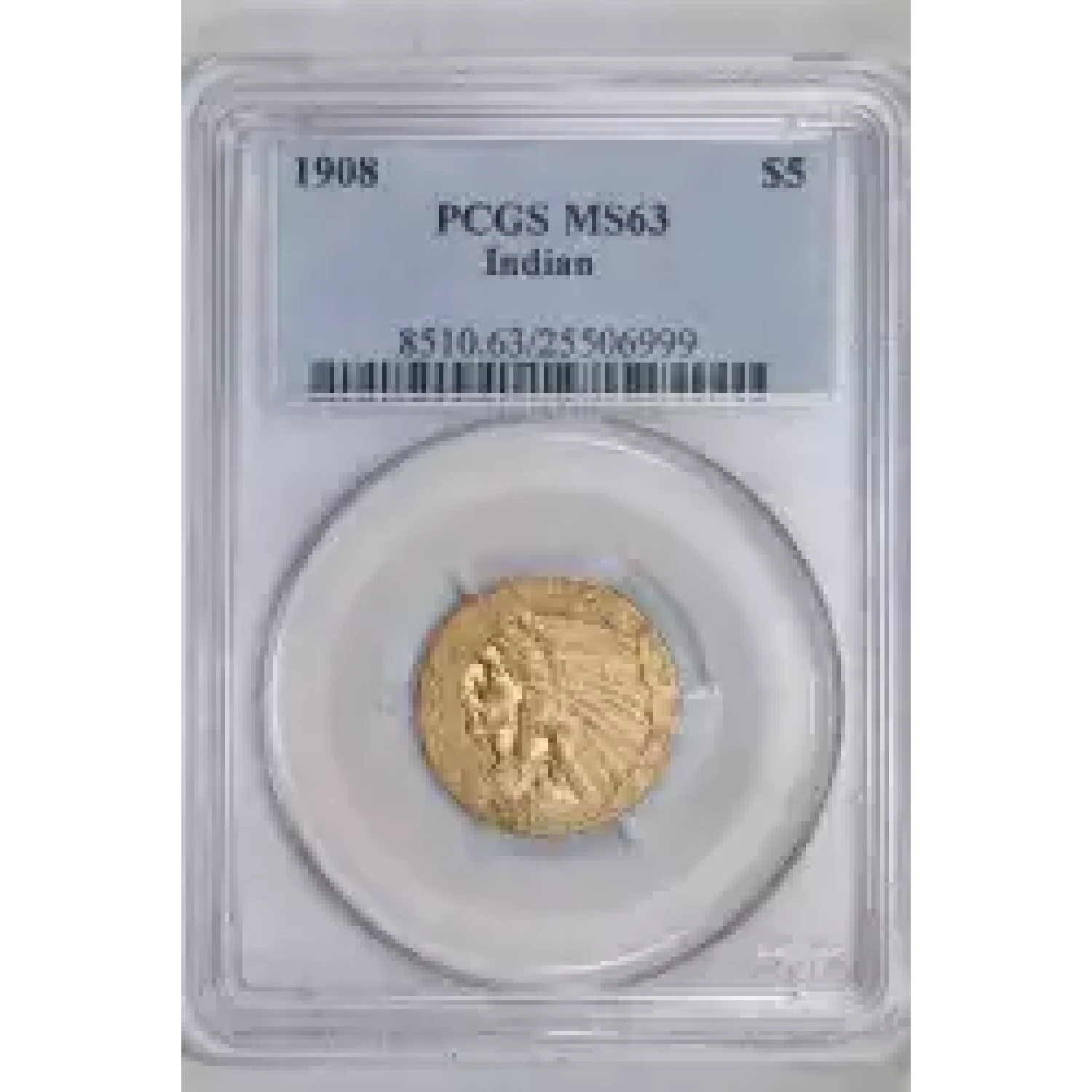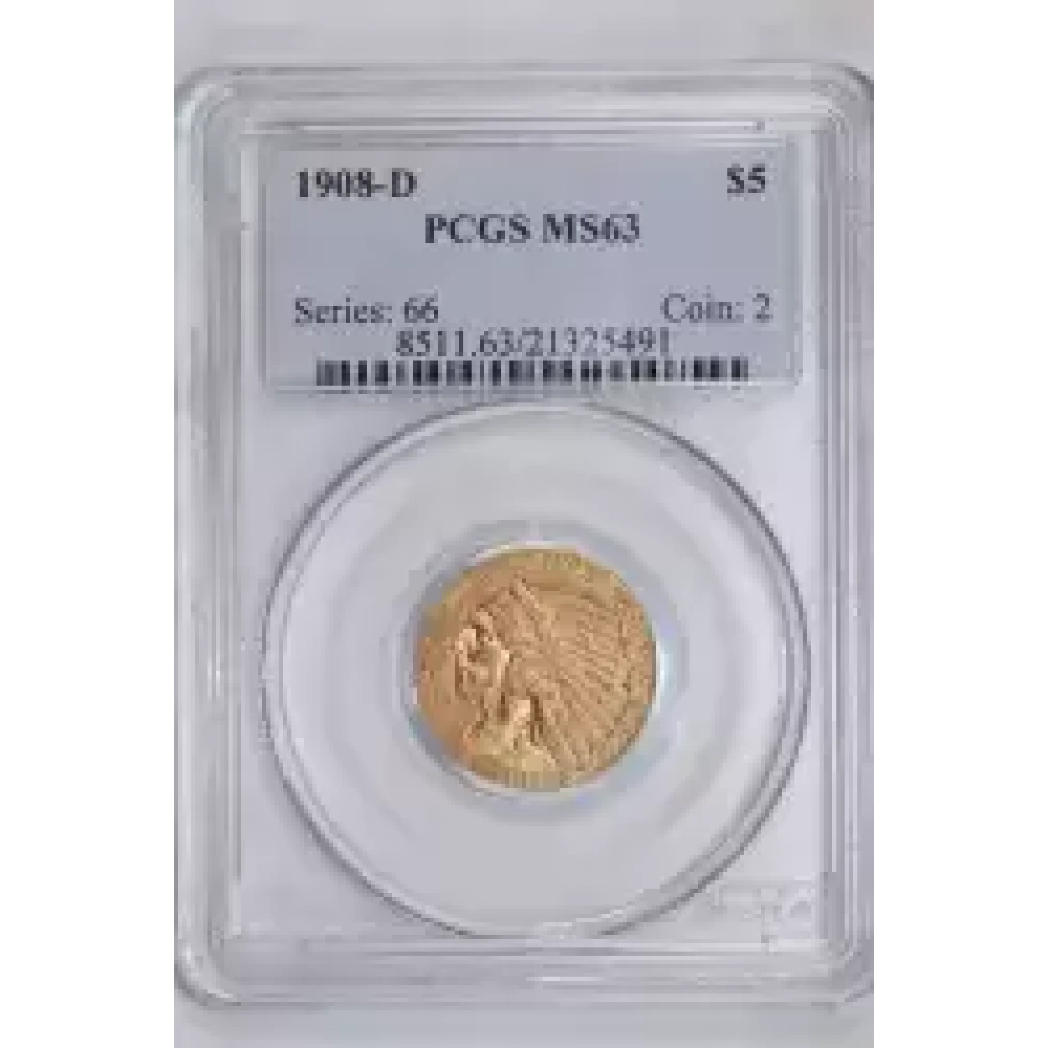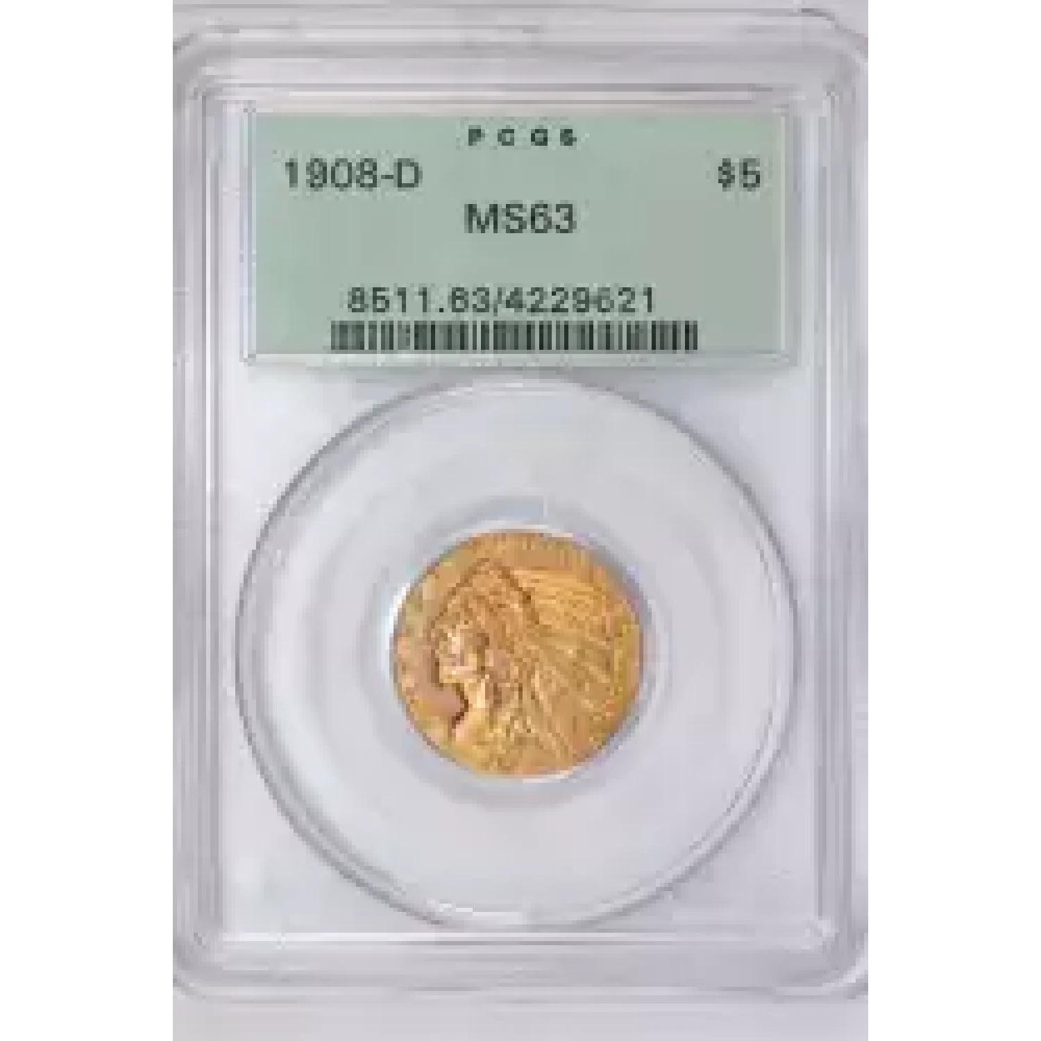 517211 | 1908-D Gold Half Eagles $5 Indian Head PCGS MS-63 | PCGS | MS-63 | Sold: 10/03/2023 | $2,130 |