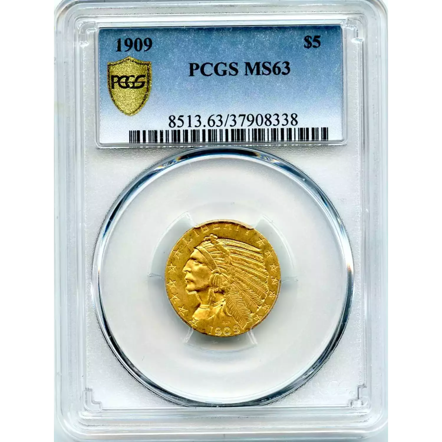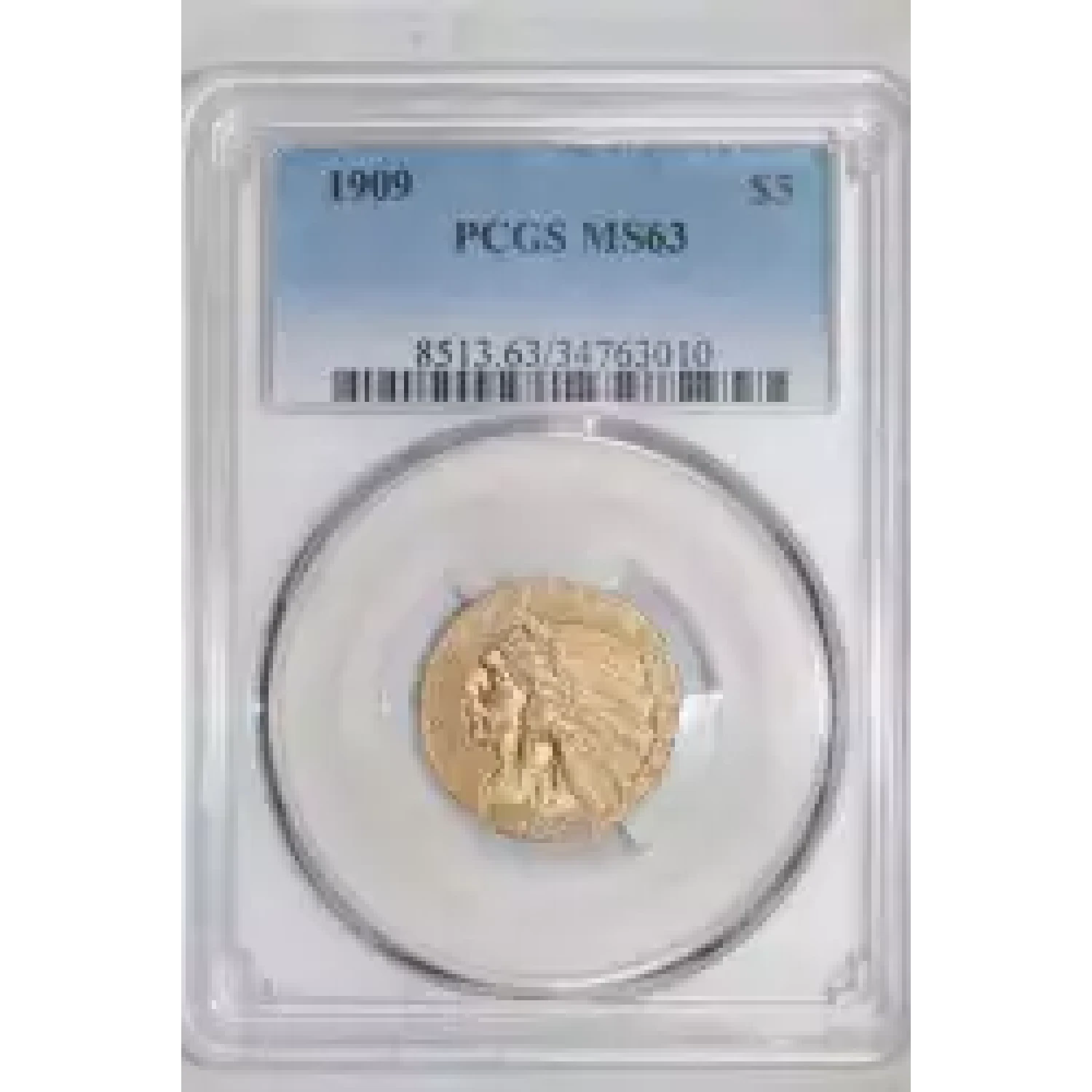 515303 | 1909 Gold Half Eagles $5 Indian Head PCGS MS-63 | PCGS | MS-63 | Sold: 15/11/2022 | $1,995 |