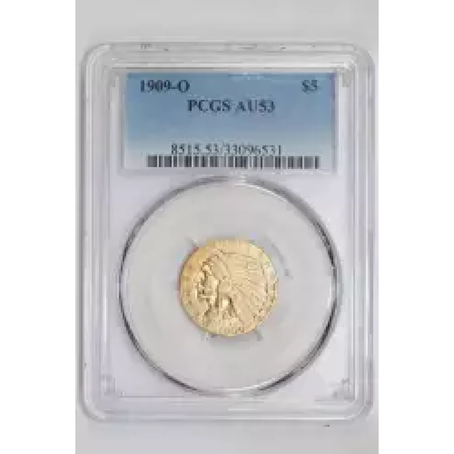 522500 | 1909-O Gold Half Eagles $5 Indian Head PCGS AU-53 | PCGS | AU-53 | Sold: 08/07/2024 | $10,250 |