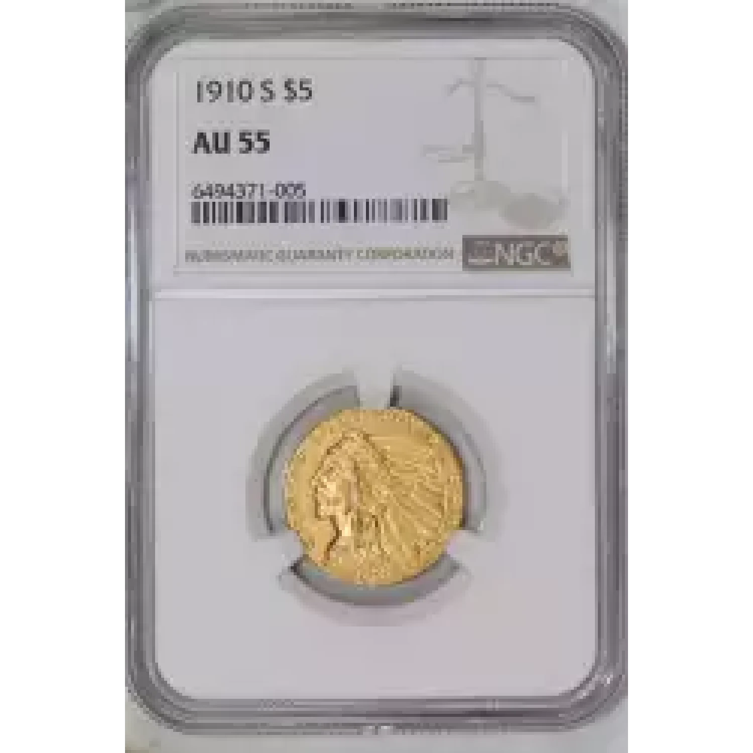 516125 | 1910-S Gold Half Eagles $5 Indian Head NGC AU-55 | NGC | AU-55 | Sold: 31/03/2023 | $850 |