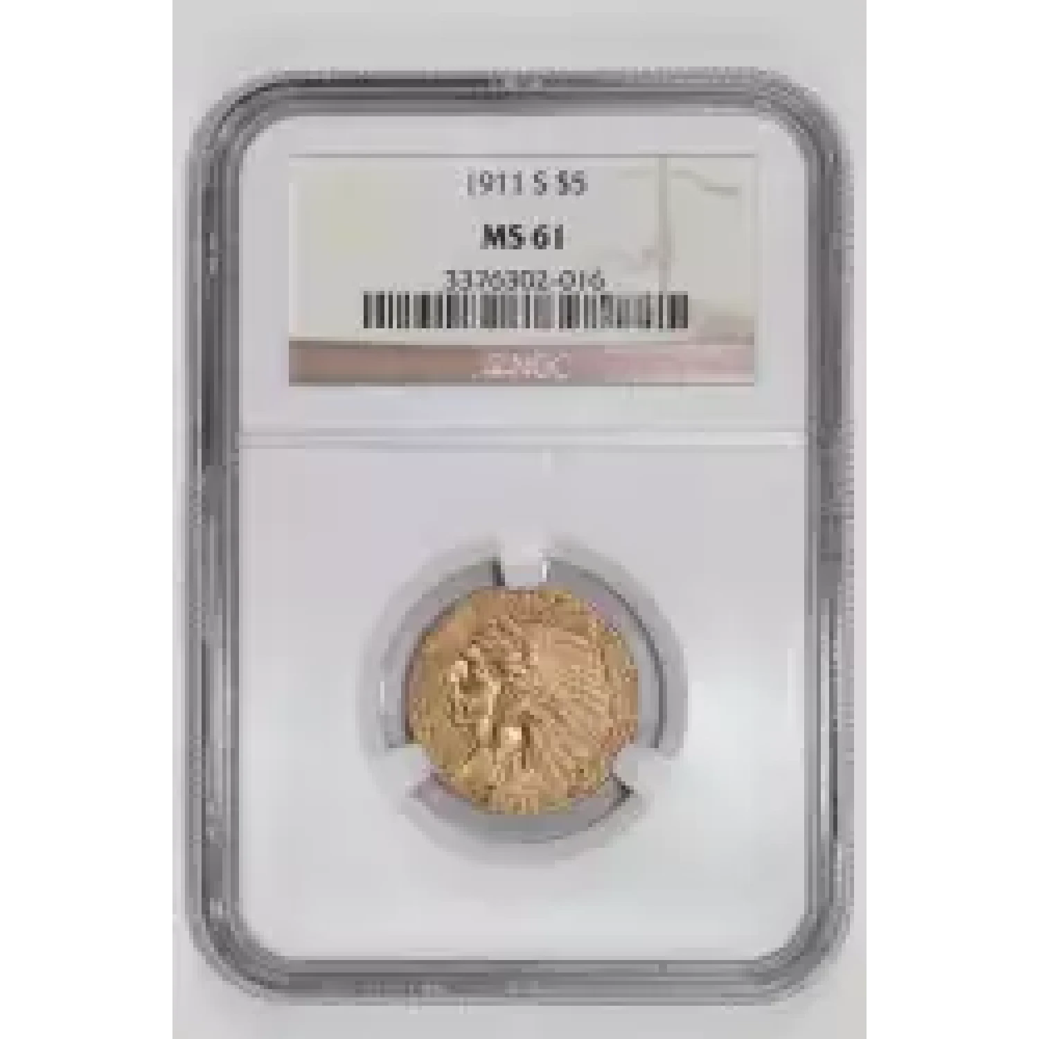 523842 | 1911-S Gold Half Eagles $5 Indian Head NGC MS-61 | NGC | MS-61 | Sold: 19/03/2025 | $1,375 |