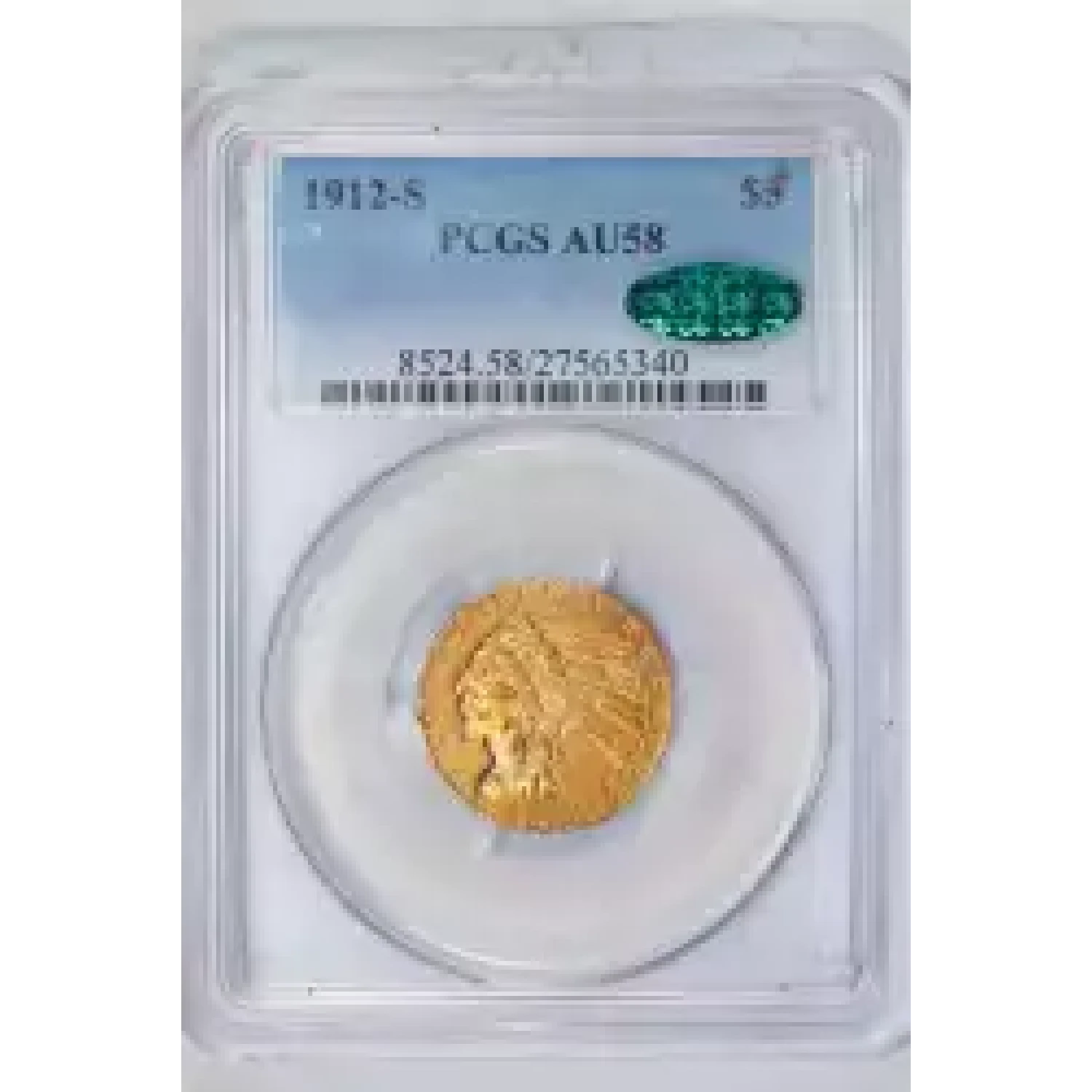 500863 | 1912-S Gold Half Eagles $5 Indian Head PCGS AU-58 CAC | PCGS | AU-58 | Sold: 24/03/2022 | $2,250 |