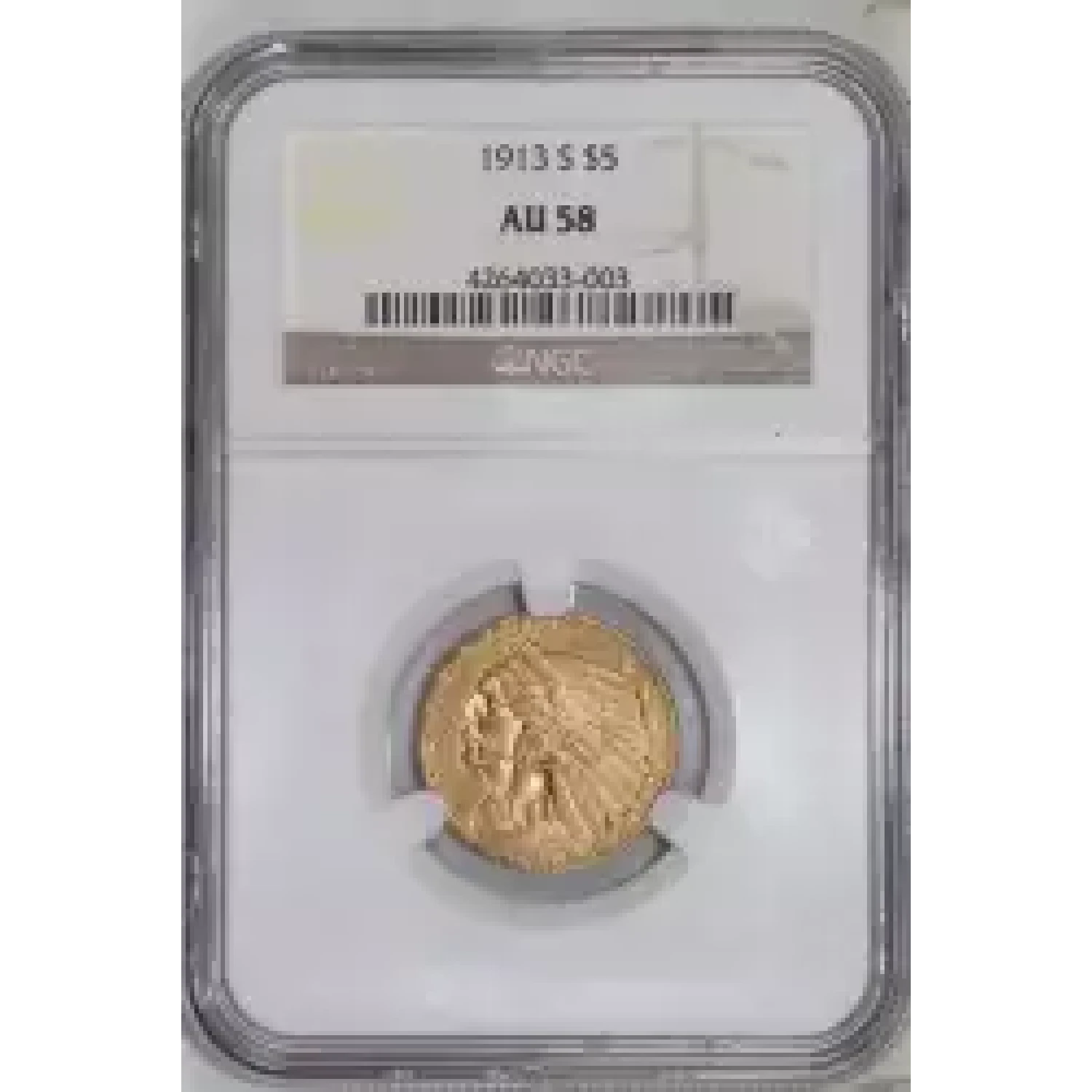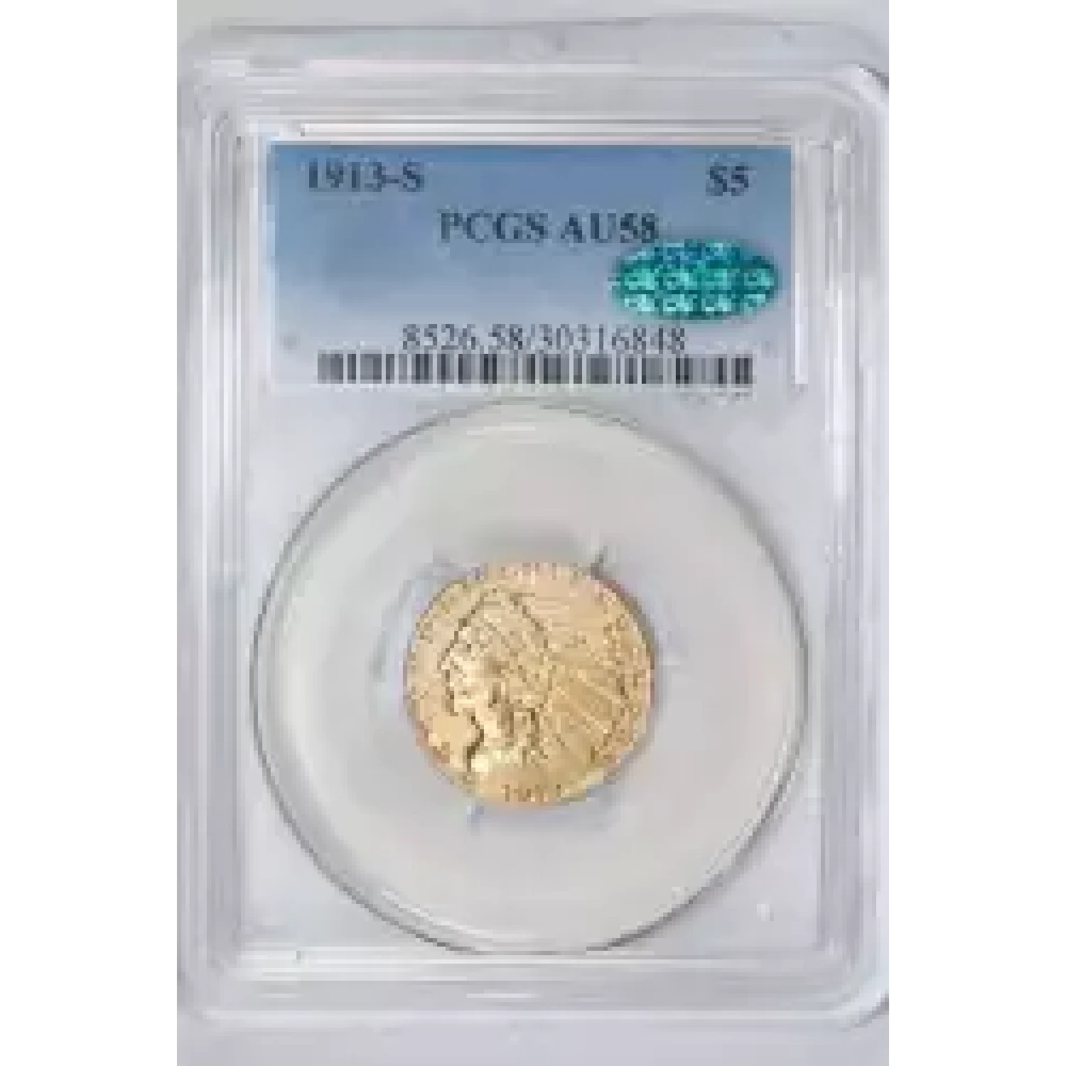500864 | 1913-S Gold Half Eagles $5 Indian Head PCGS AU-58 CAC | PCGS | AU-58 | Sold: 05/04/2022 | $2,200 |