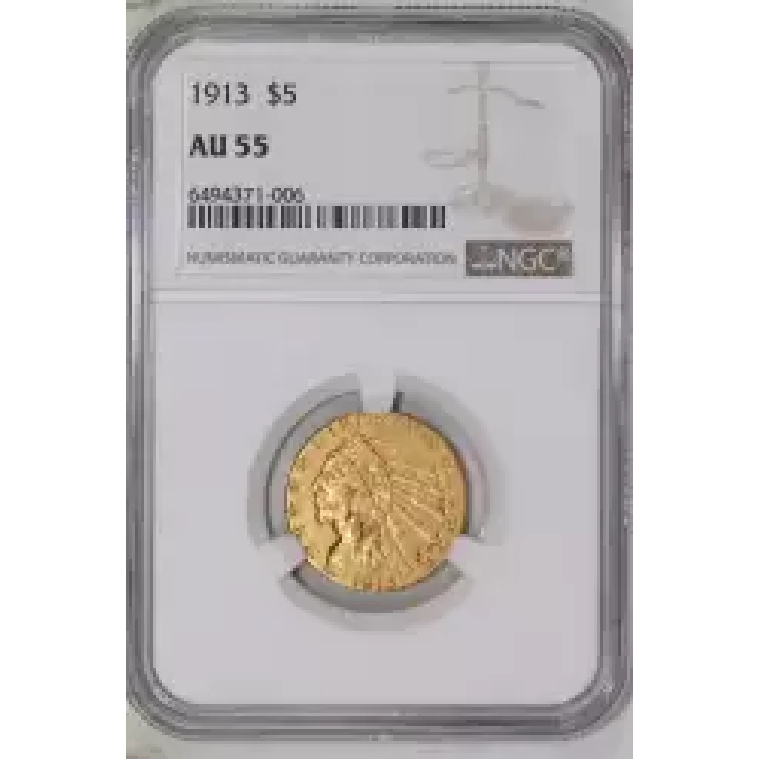 516124 | 1913 Gold Half Eagles $5 Indian Head NGC AU-55 | NGC | AU-55 | Sold: 31/03/2023 | $1,150 |