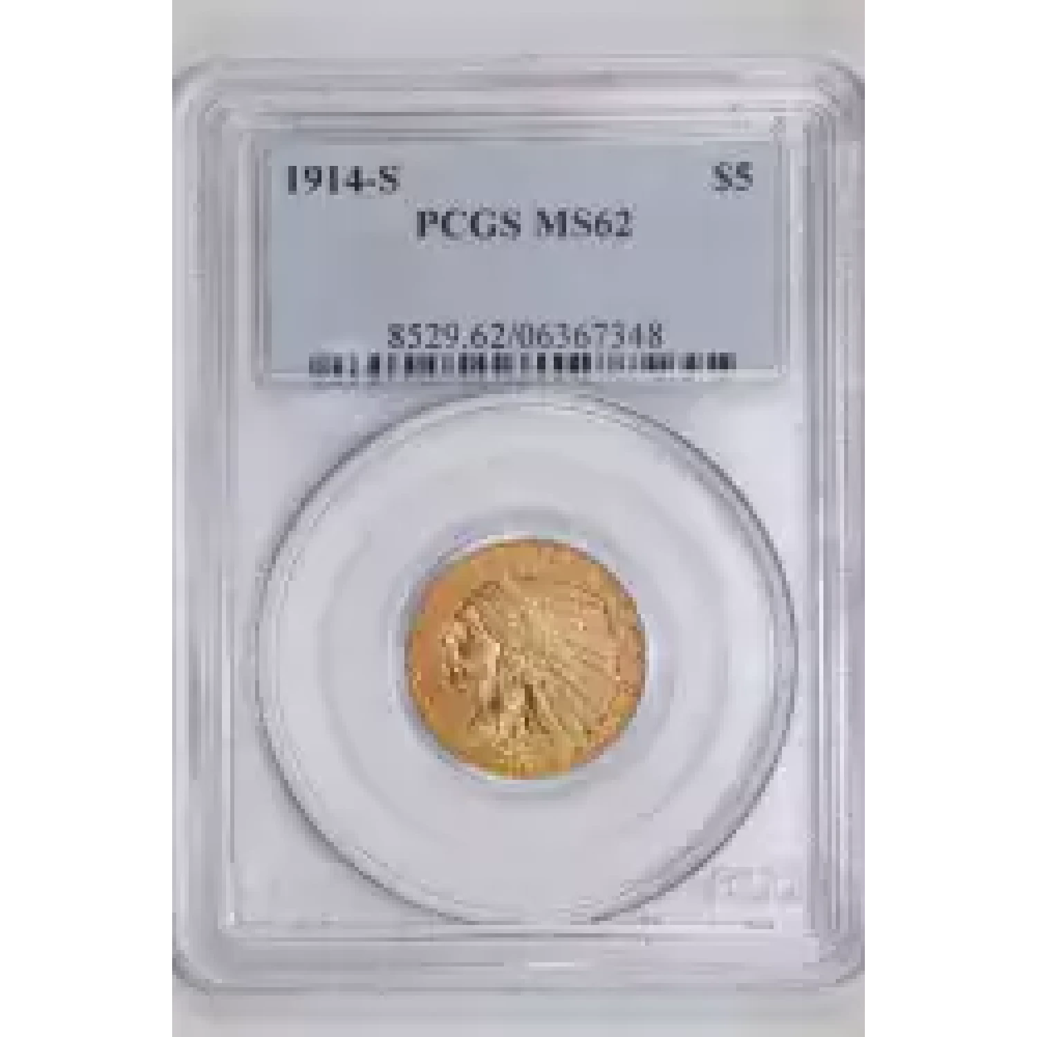 514620 | 1914-MS-62 Gold Half Eagles $5 Indian Head PCGS MS-62 CAC | PCGS | MS-62 | Sold: 22/02/2021 | $4,500 |
