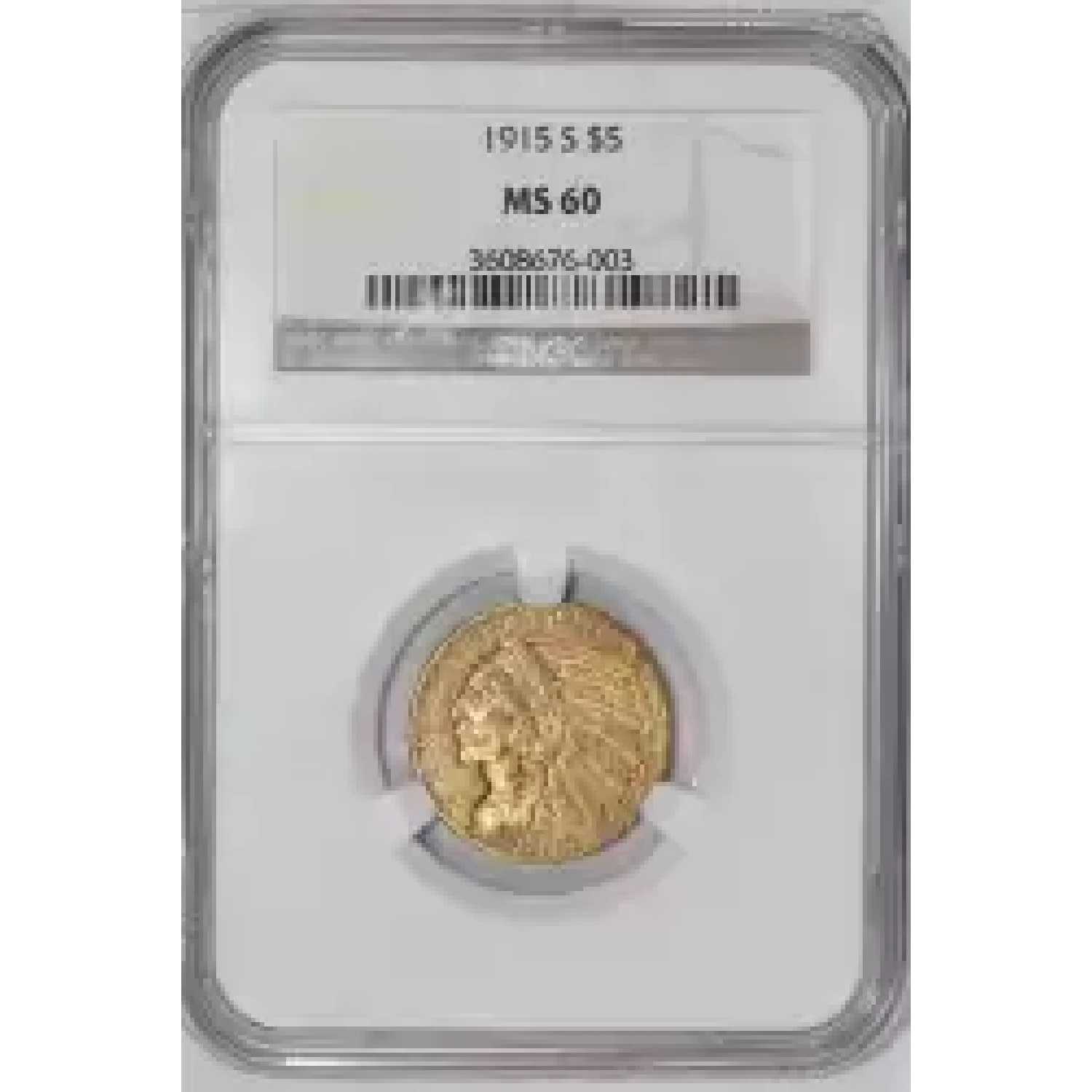 501762 | 1915-S Gold Half Eagles $5 Indian Head NGC MS-60 | NGC | MS-60 | Sold: 17/01/2024 | $3,500 |