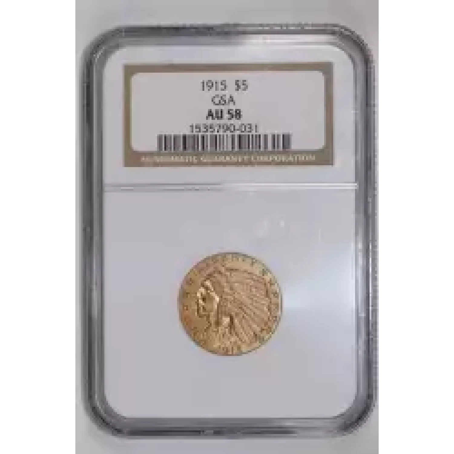 518081 | 1915 Gold Half Eagles $5 Indian Head NGC AU-58 | NGC | AU-58 | Sold: 03/05/2023 | $1,095 |