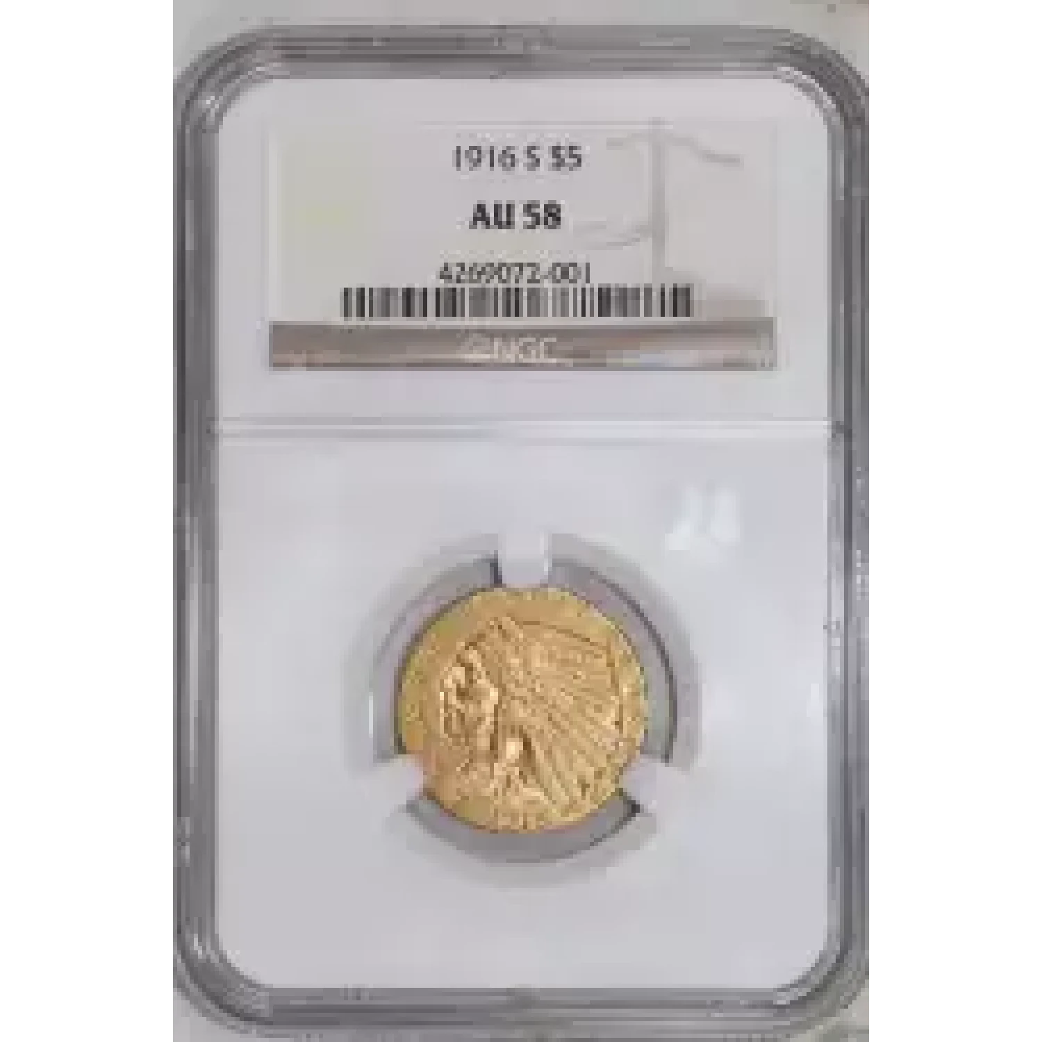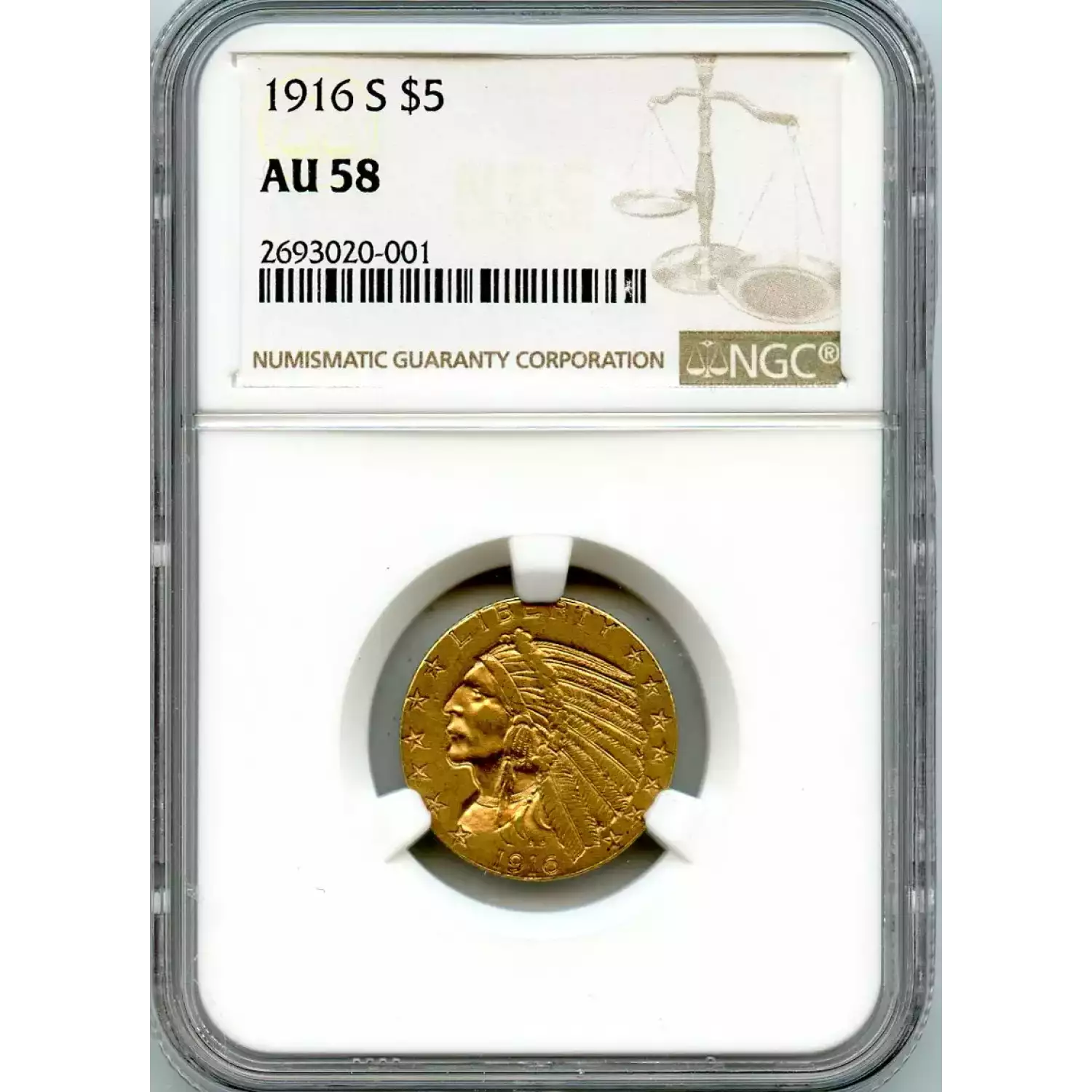 516070 | 1916-S Gold Half Eagles $5 Indian Head NGC AU-58 | NGC | AU-58 | Sold: 20/07/2023 | $1,250 |