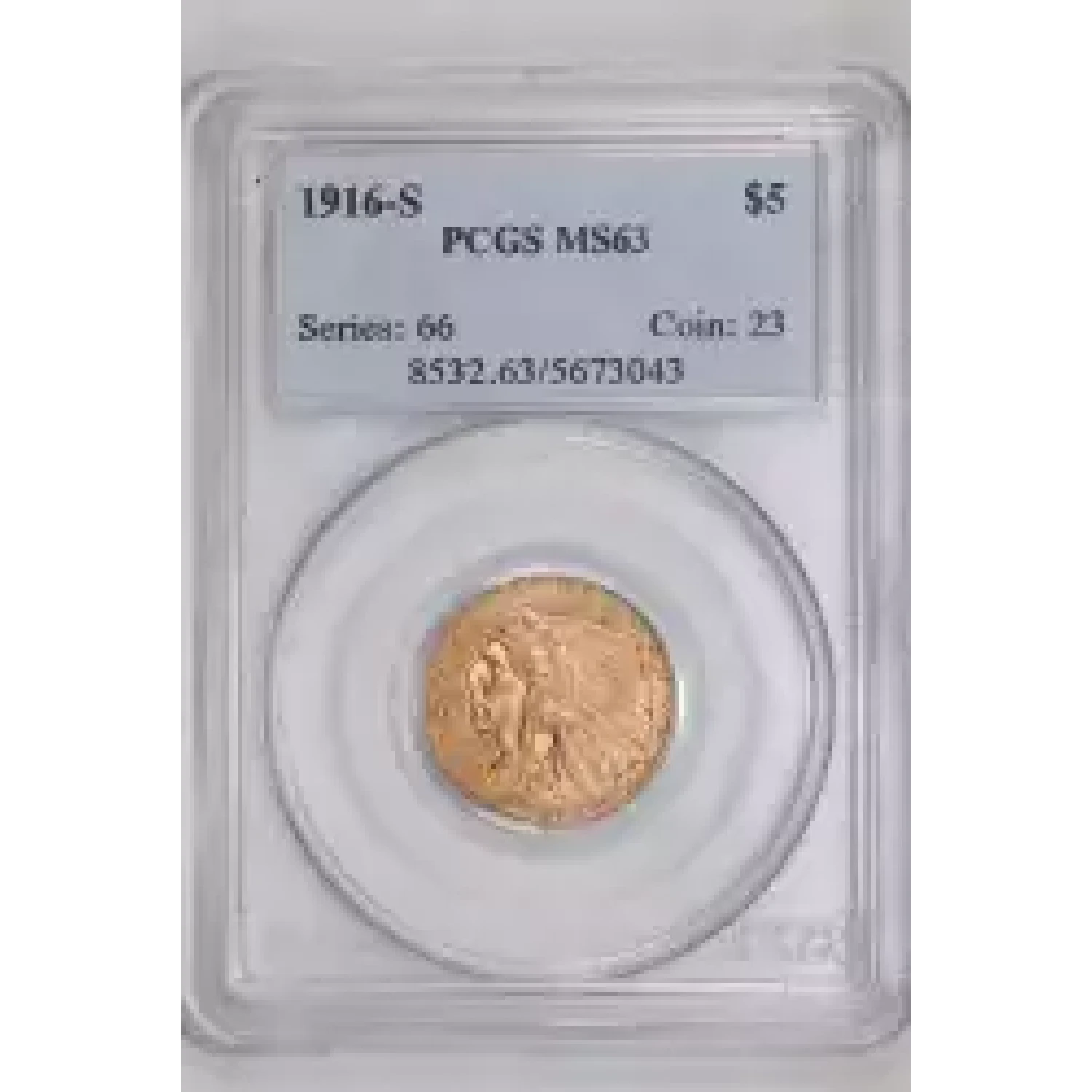 517167 | 1916-S Gold Half Eagles $5 Indian Head PCGS MS-63 | PCGS | MS-63 | Sold: 10/03/2023 | $6,000 |