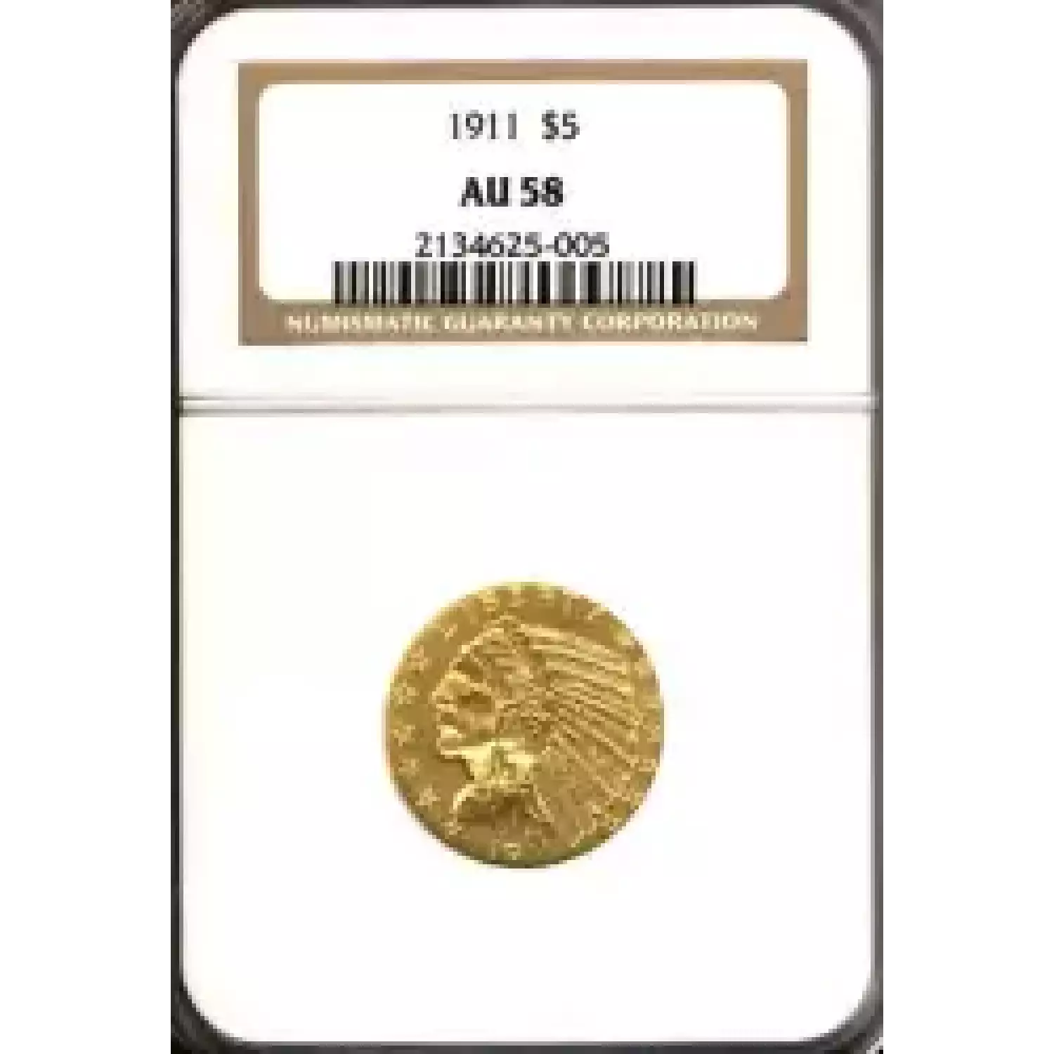 503342 | 1911-AU-58 Gold Half Eagles $5 Indian Head NGC AU-58 | NGC | AU-58 | Sold: 28/02/2006 | $280 |