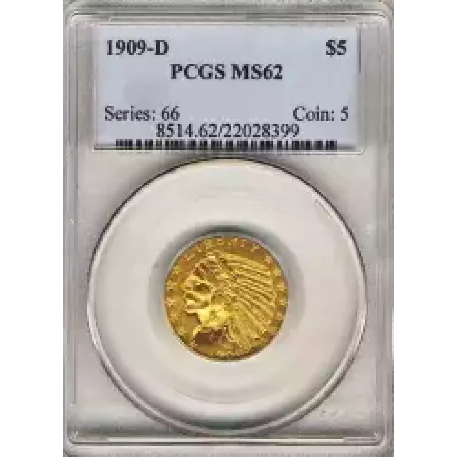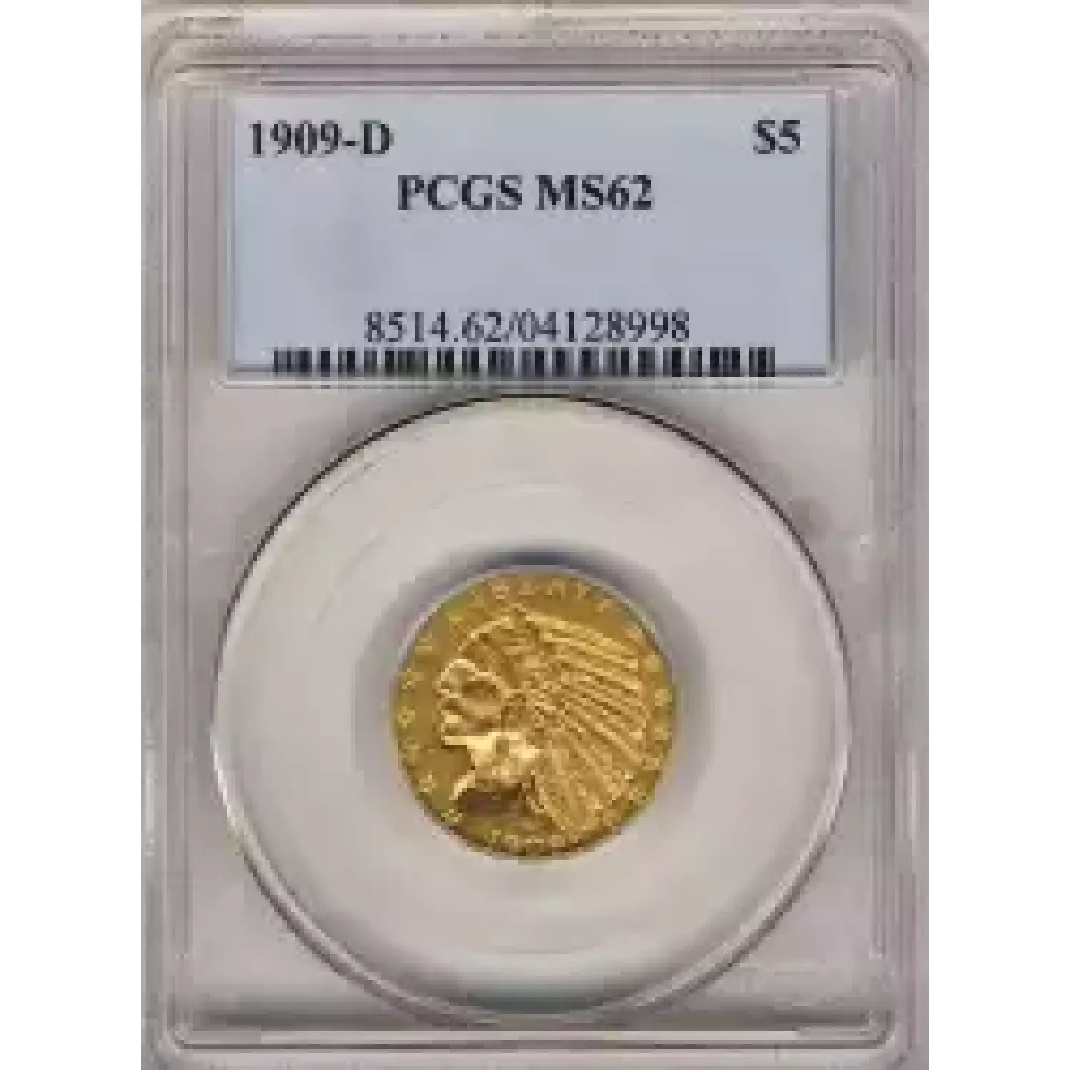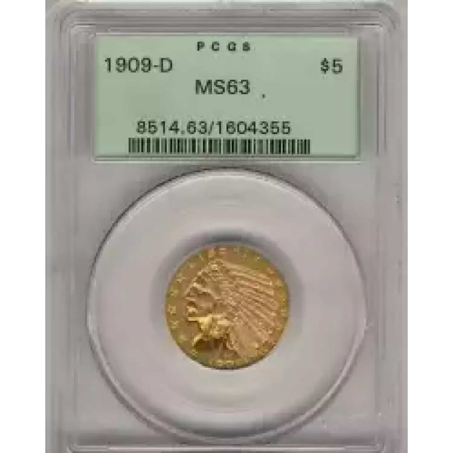 503458 | 1909-MS-62 Gold Half Eagles $5 Indian Head PCGS MS-62 | PCGS | MS-62 | Sold: 06/05/2006 | $1,100 |
