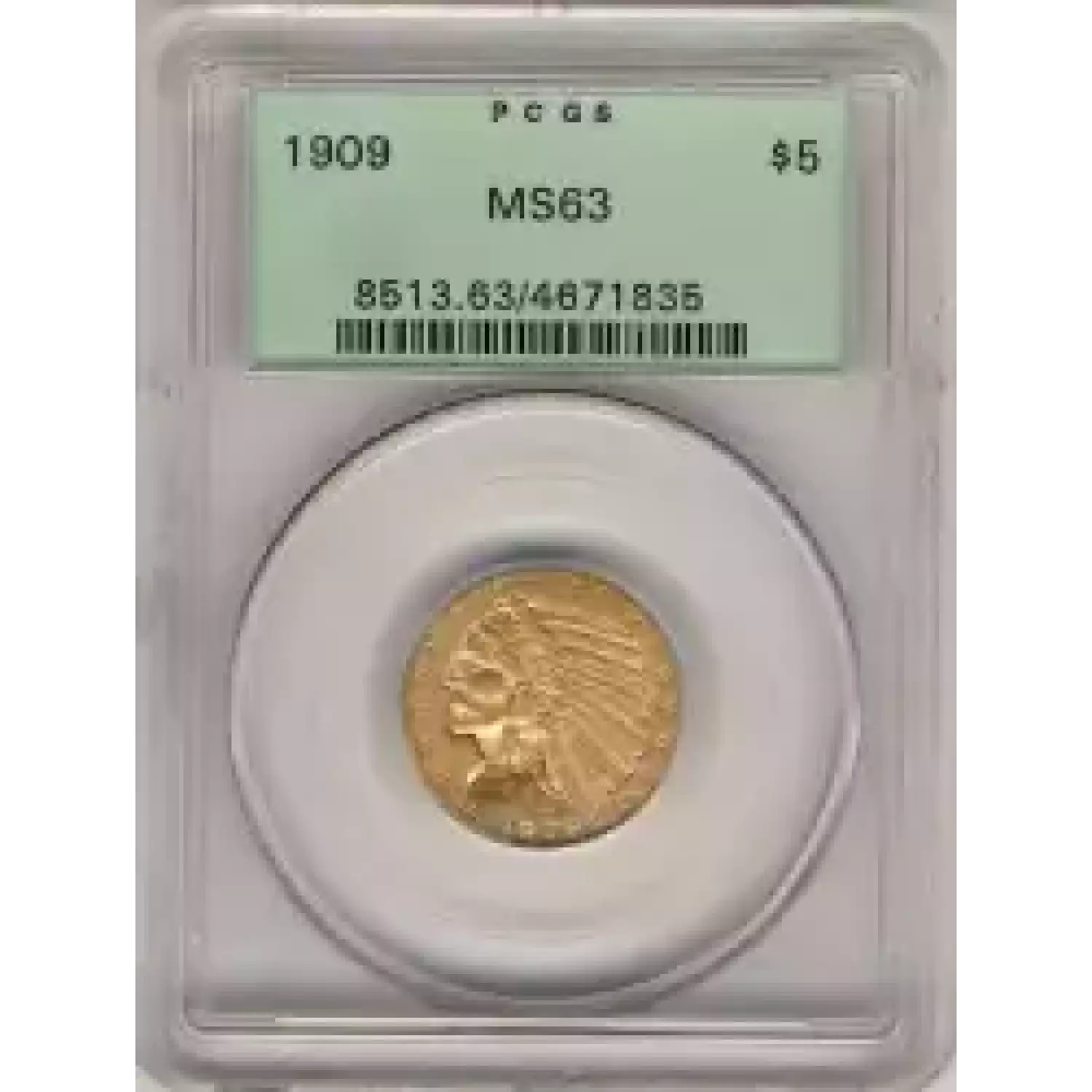 513037 | 1909-MS-63 Gold Half Eagles $5 Indian Head PCGS MS-63 | PCGS | MS-63 | Sold: 08/07/2019 | $740 |