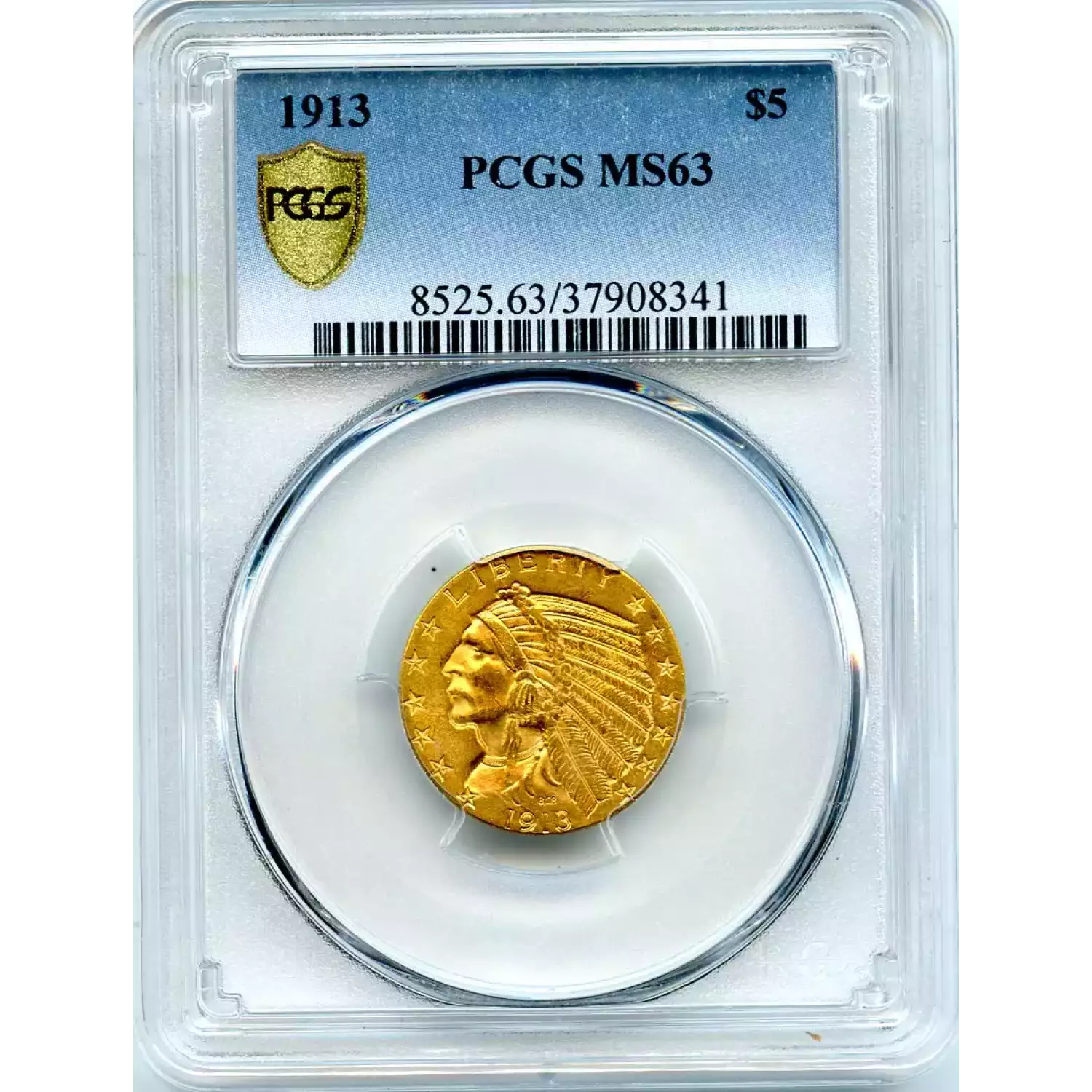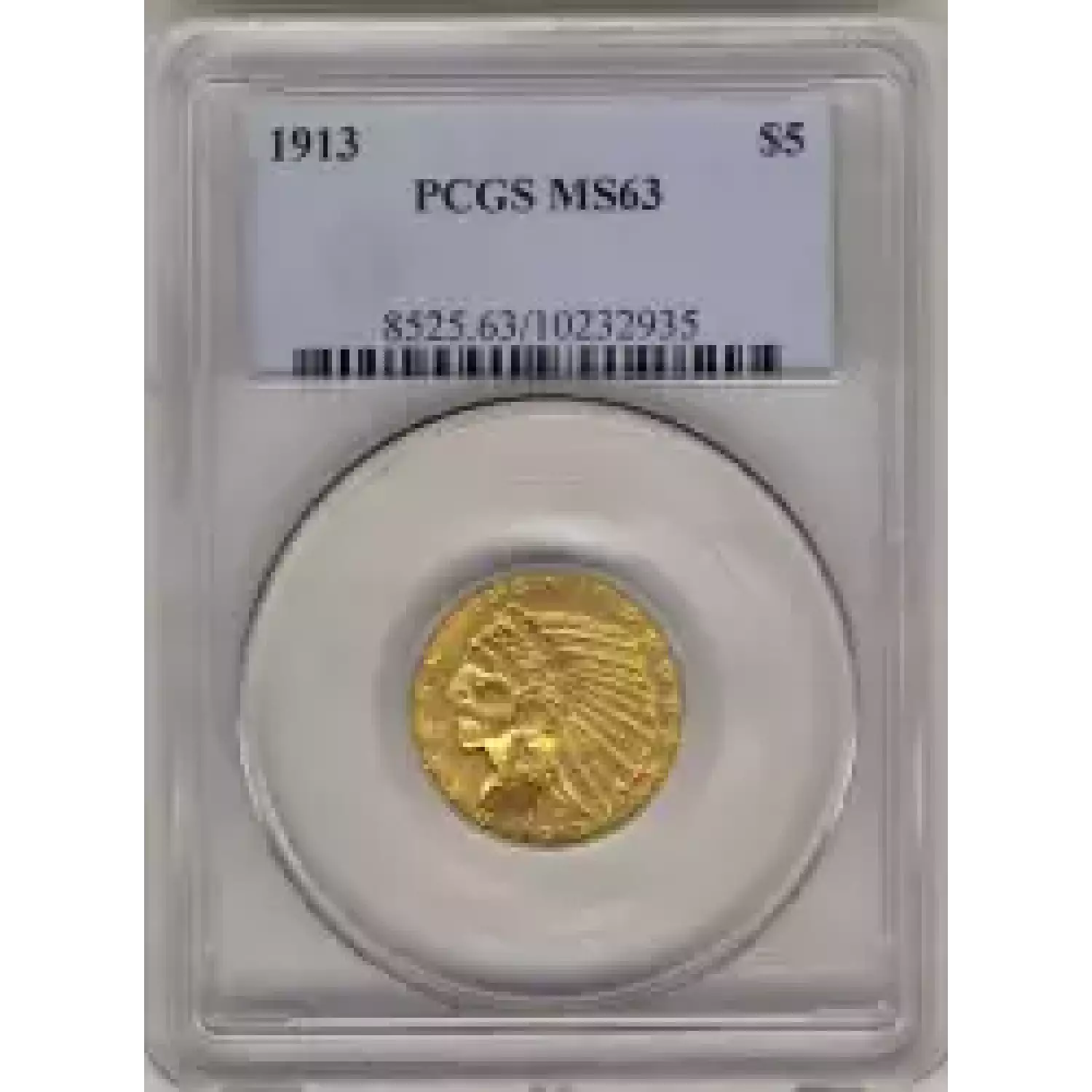 513036 | 1913-MS-63 Gold Half Eagles $5 Indian Head PCGS MS-63 | PCGS | MS-63 | Sold: 08/07/2019 | $740 |