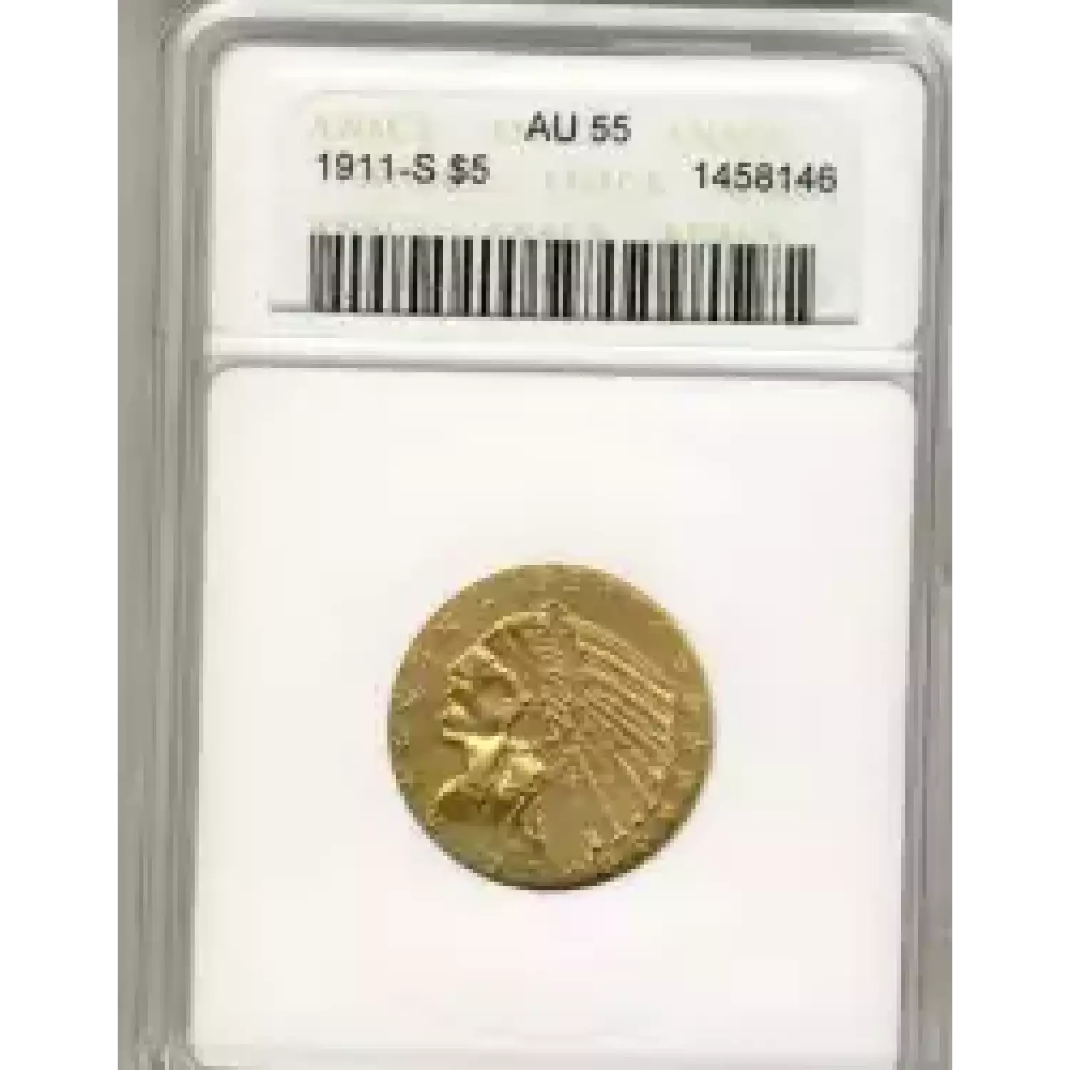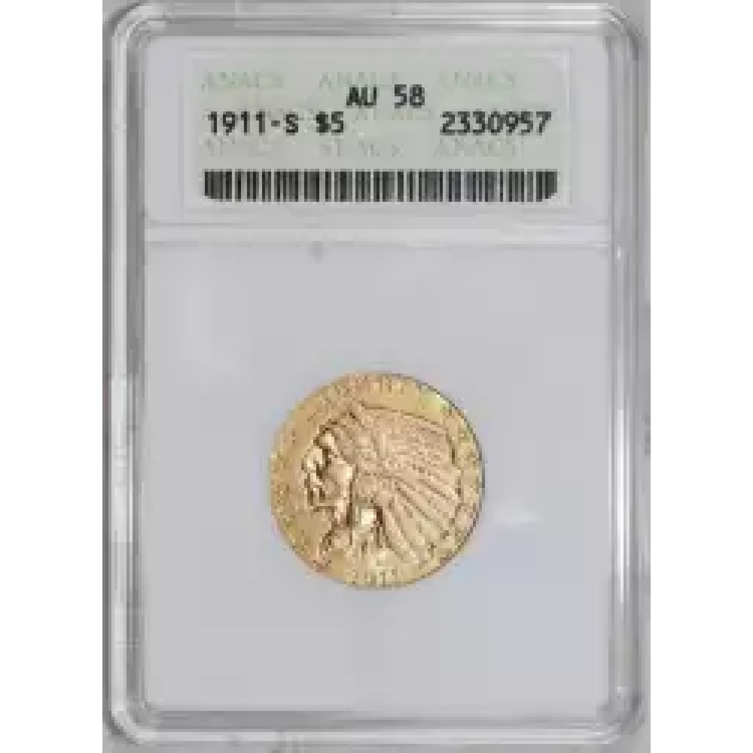 515745 | 1911-S Gold Half Eagles $5 Indian Head ANACS AU-58 | ANACS | AU-58 | Sold: 07/11/2023 | $1,000 |