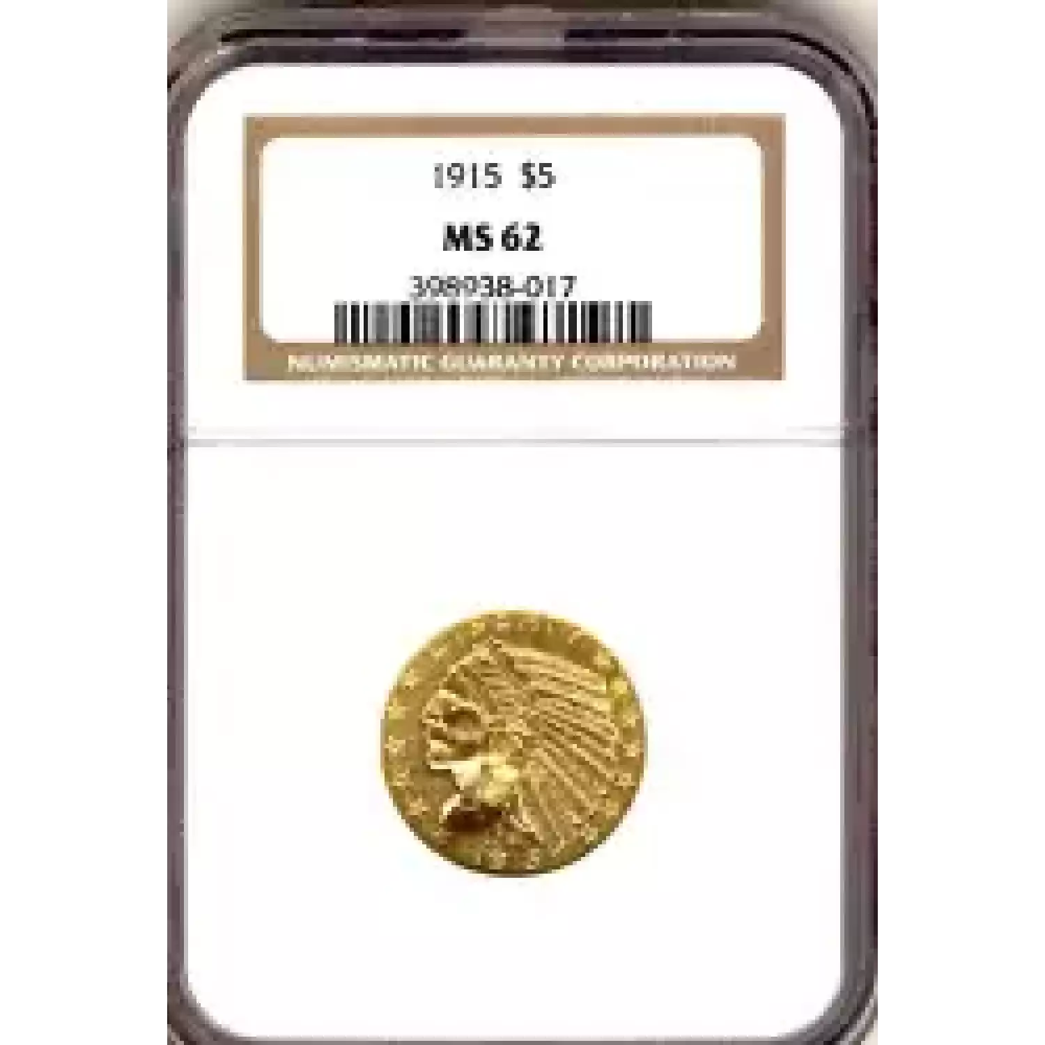 504126 | 1915-MS-62 Gold Half Eagles $5 Indian Head NGC MS-62 | NGC | MS-62 | Sold: 01/08/2009 | $850 |
