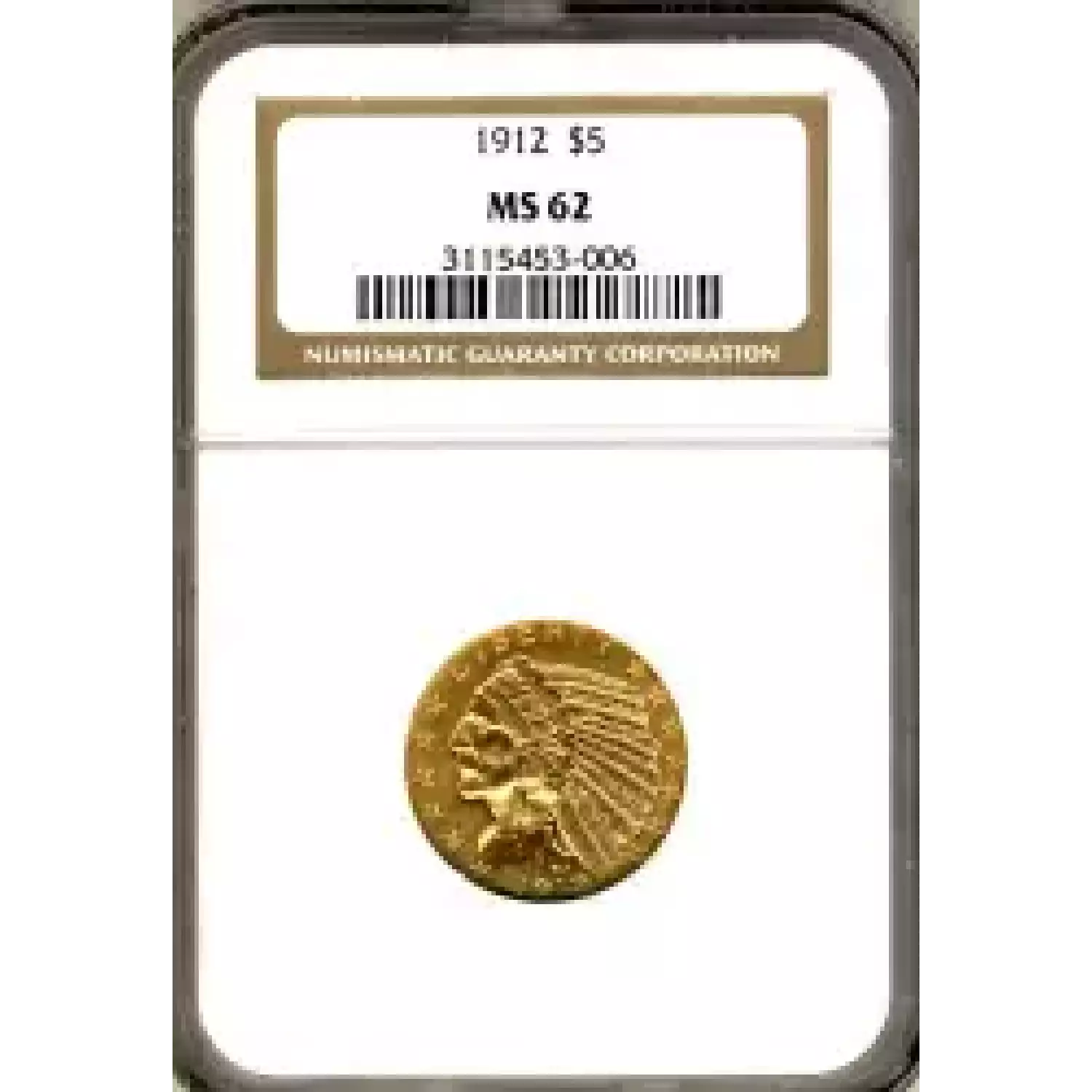 504389 | 1912-MS-62 Gold Half Eagles $5 Indian Head NGC MS-62 | NGC | MS-62 | Sold: 01/08/2009 | $850 |
